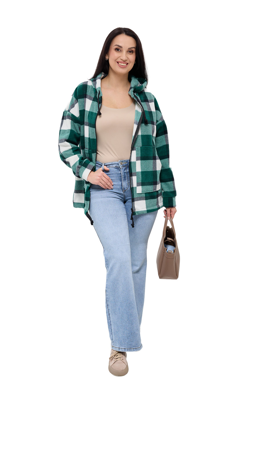 Куртка Флиса, клетка, зеленая