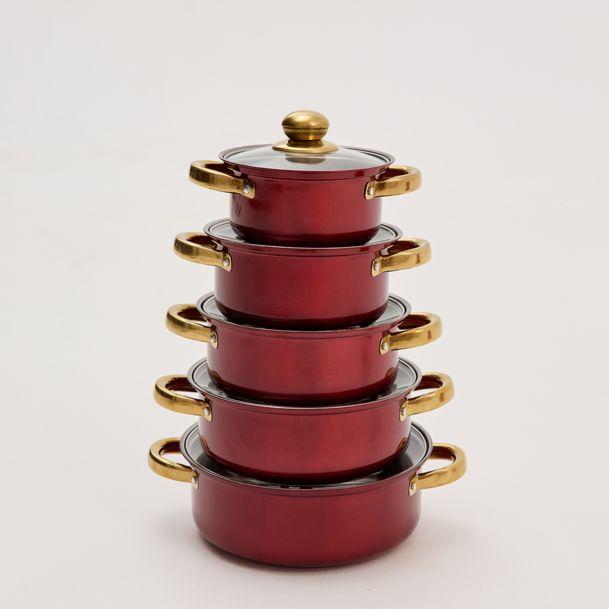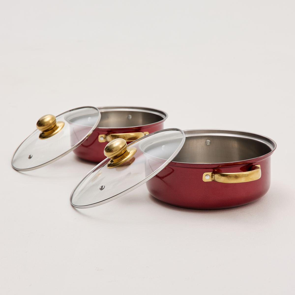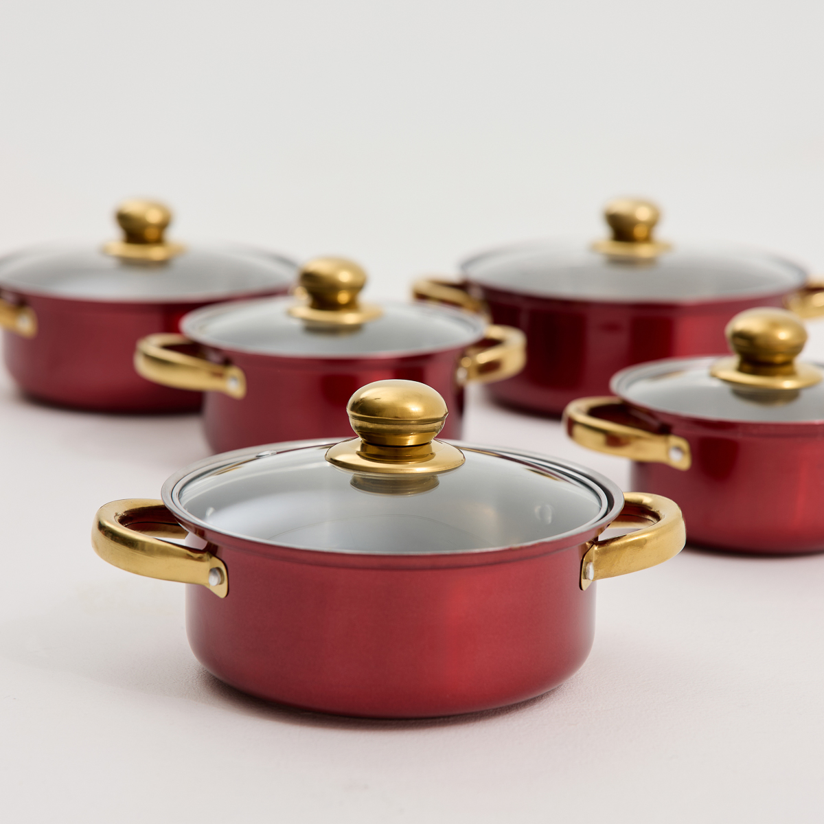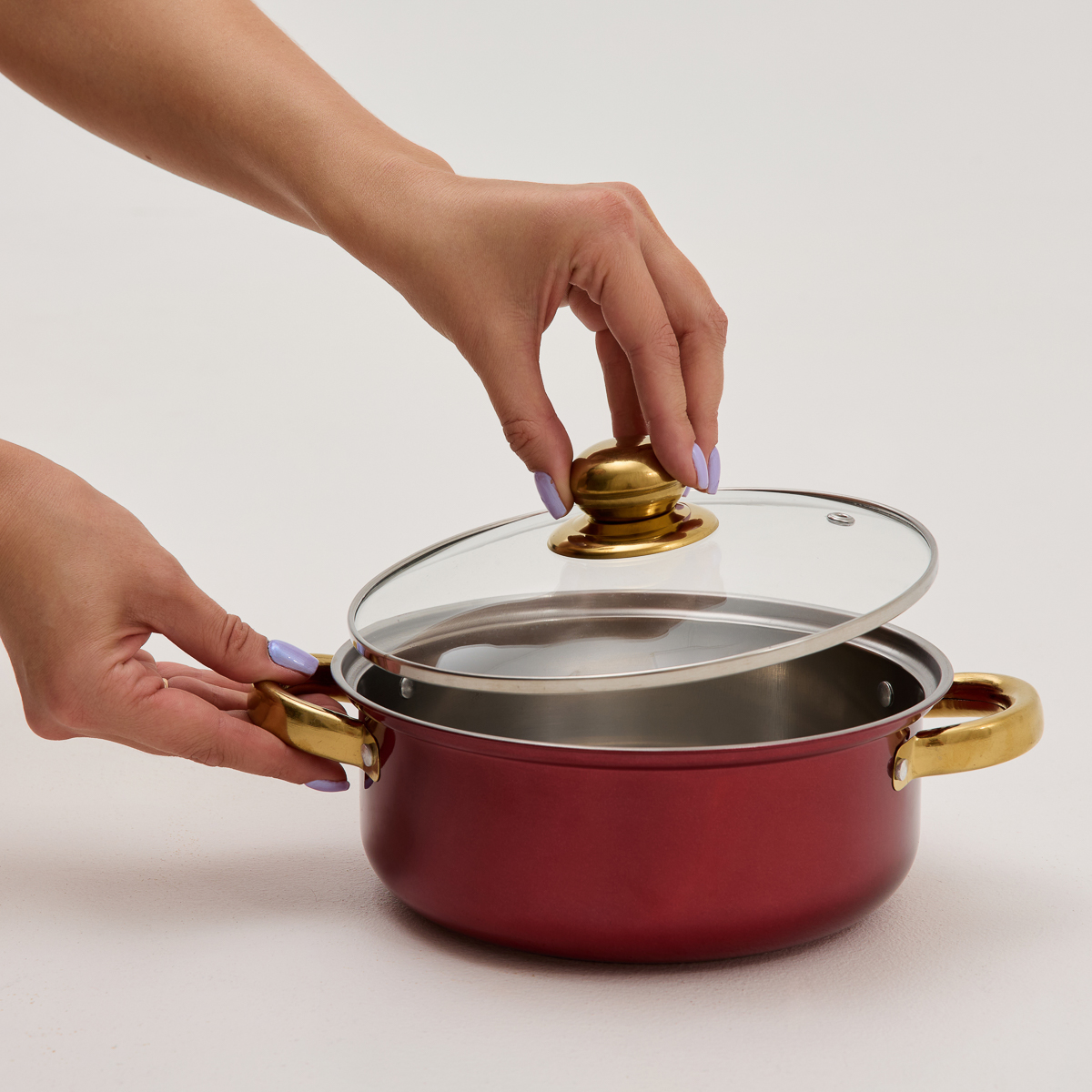 Набор кастрюль Гурмания изготовлен из высококачественной нержавеющей стали. Он долговечен, устойчив к царапинам и, что немаловажно — невероятно красив! Готовьте с удовольствием! Каждая кастрюля в комплекте оснащена прозрачной крышкой. Все элементы можно мыть в посудомоечной машине. В коллекции представлены три потрясающих расцветки: гранатовый, персиковый и абрикосовый. А золотистые ручки и крышки — настоящее украшение! Выглядит роскошно!