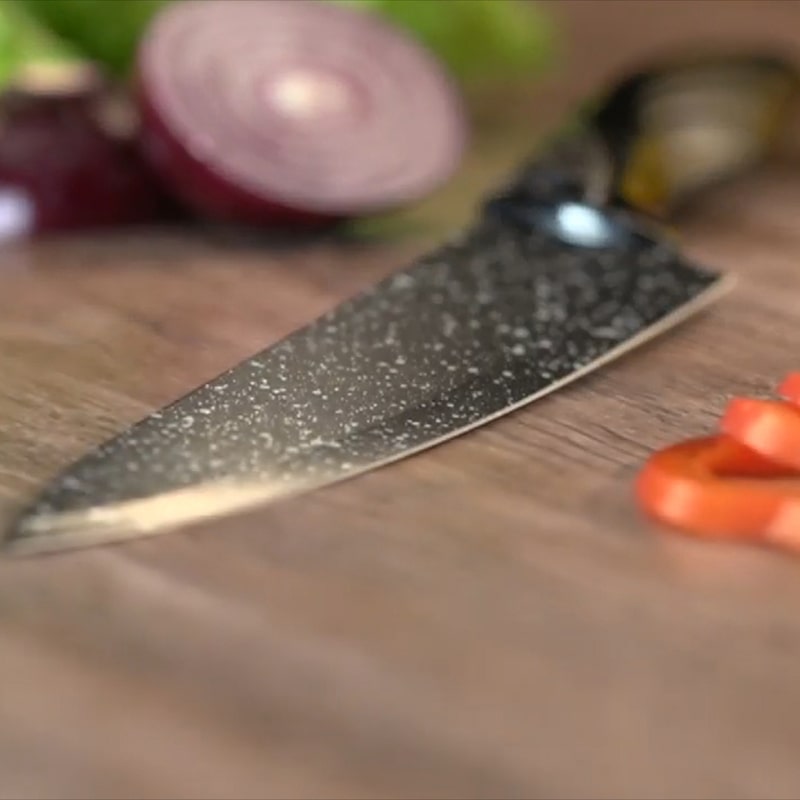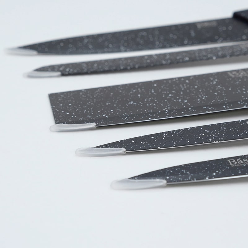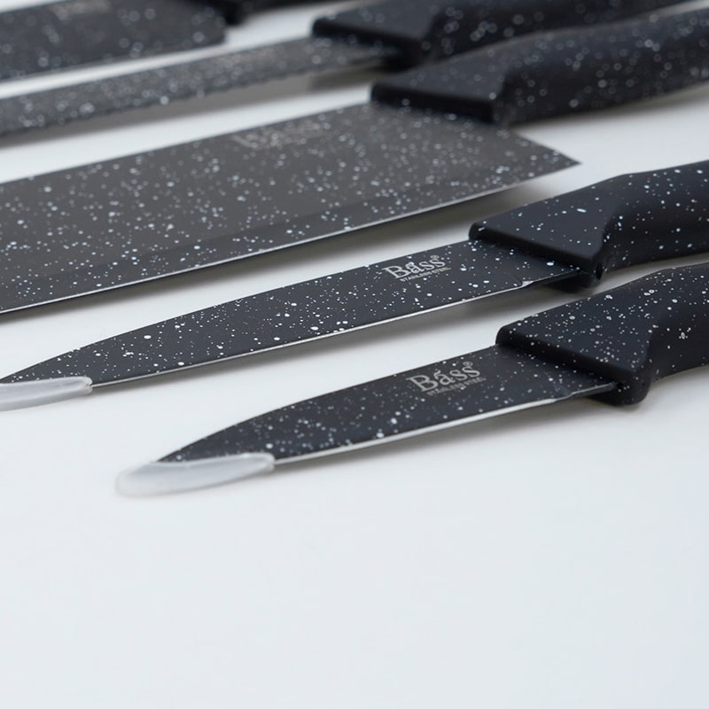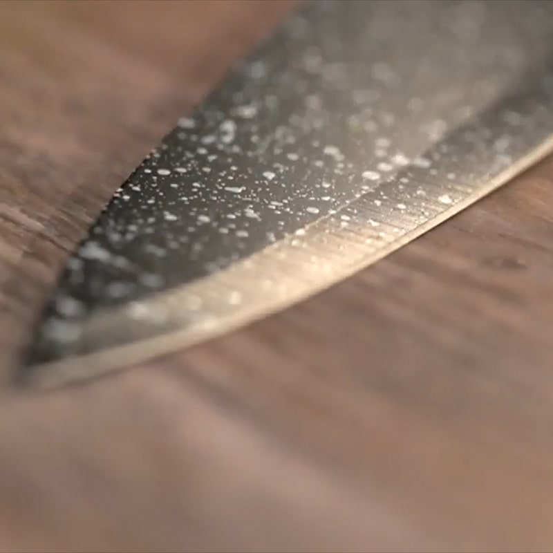 Эффективность ножей обеспечивается их двусторонней заточкой и специальным антибактериальным и антикоррозийным покрытием. Благодаря этим технологиям, лезвия ножей долгое время остаются невероятно острыми и прочными.