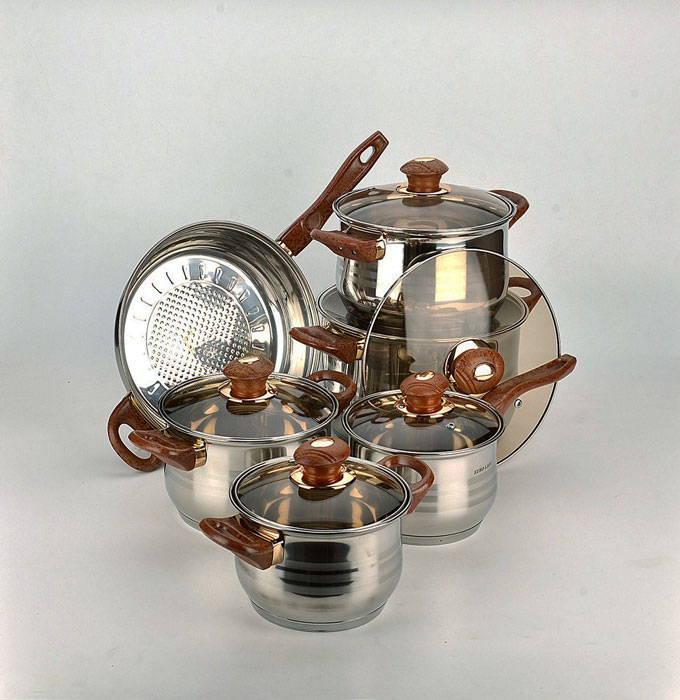 - Набор посуды имеет металлический цвет, придающий вашей кухне стильный вид.