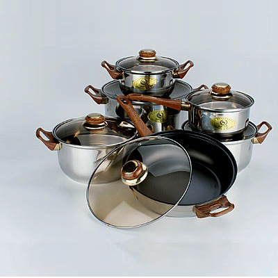 - Сотейник и кастрюли снабжены прочными стеклянными крышками, позволяющими контролировать процесс приготовления.