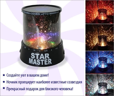 - Стильный дизайн. Ночная лампа Star Master не просто выполнит свою функцию, но и станет замечательным дополнением интерьера вашего дома;