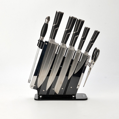 Все ножи аккуратно уложены в элегантную подставку, обеспечивая удобное хранение и быстрый доступ. Это делает кованые ножи на подставке Mayer Boch MB-21231 отличным дополнением к любой кухне.