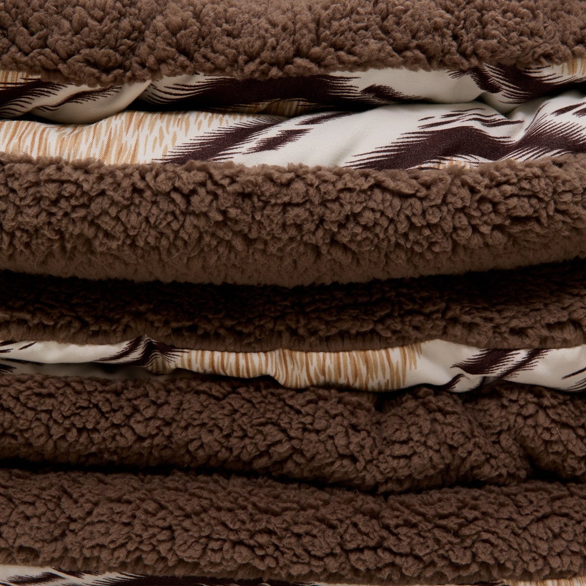 Двусторонняя зимняя одеяло, одна поверхность полиэстер, вторая поверхность шерсть. Можно использовать как покрывало на кровать, как теплое одеяло, как накидку на мебель. Очень теплое. Нравится детям.