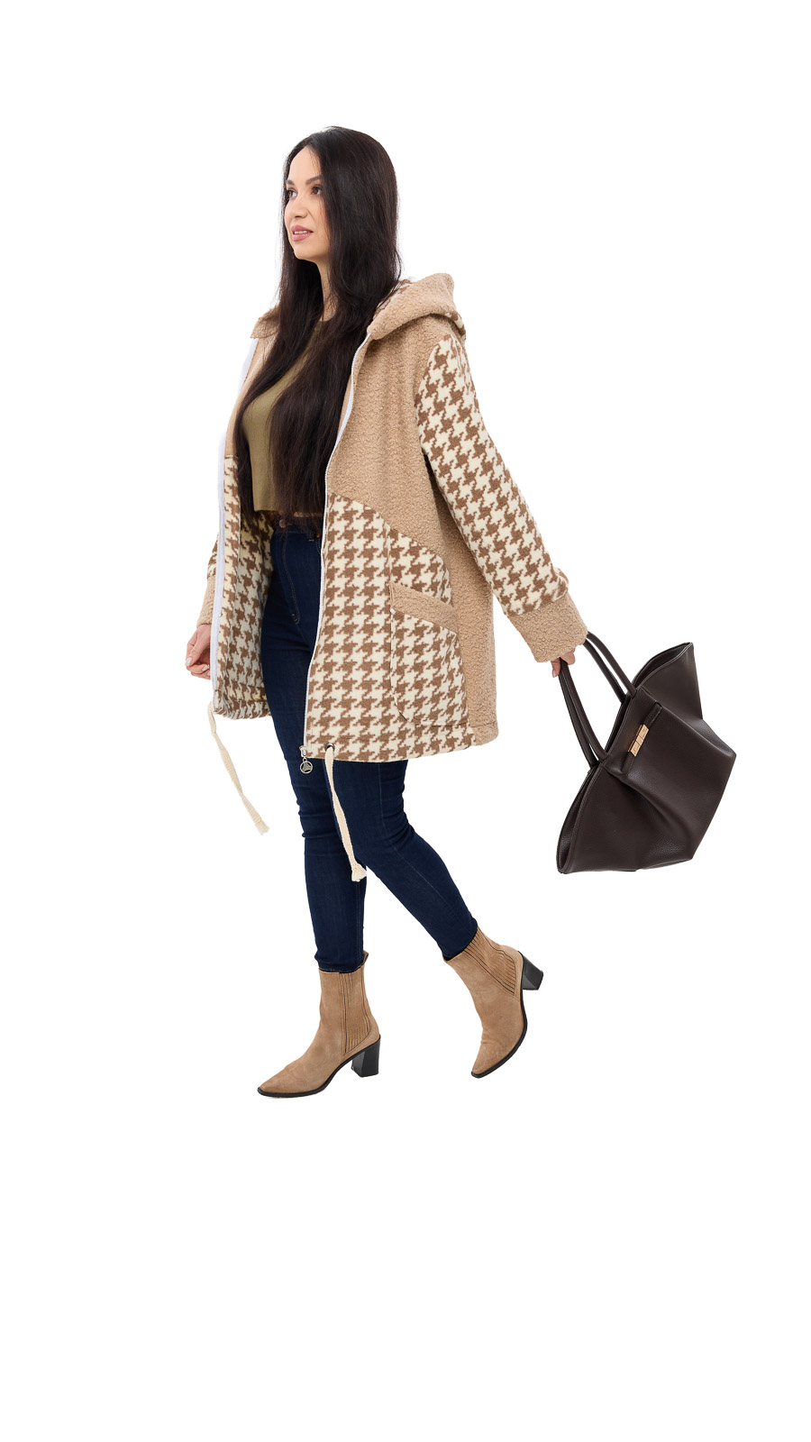Узор «гусиные лапки» придаёт образу элегантность и индивидуальность, делая пальто заметным и стильным!