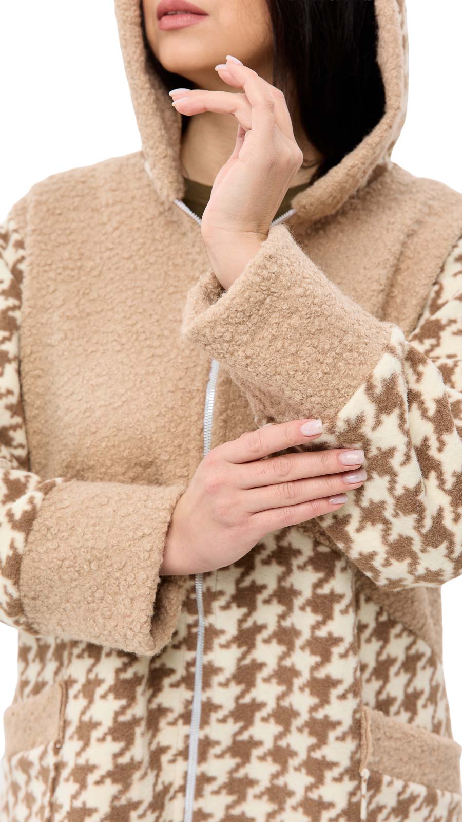 Узор «гусиные лапки» придаёт образу элегантность и индивидуальность, делая пальто заметным и стильным!