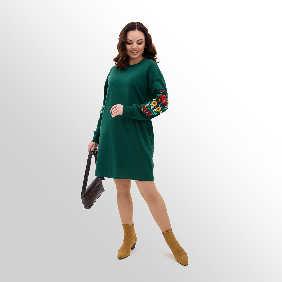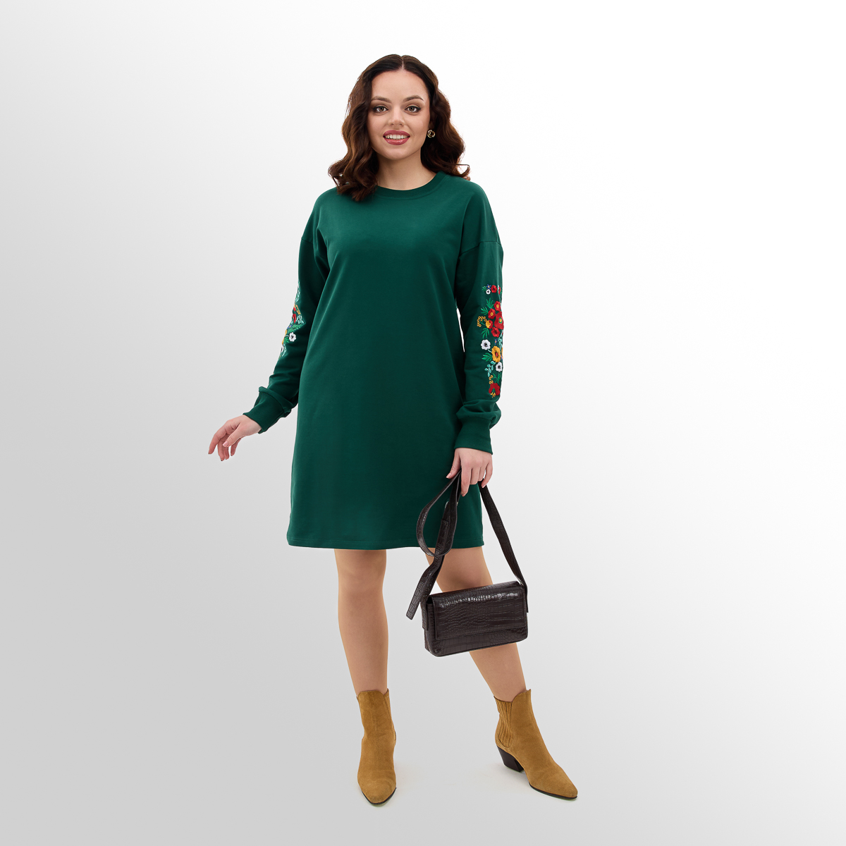 Крой: Платье женское с турецкой двунитки с вышивкой на рукавах. Ткань из натуральных составляющих