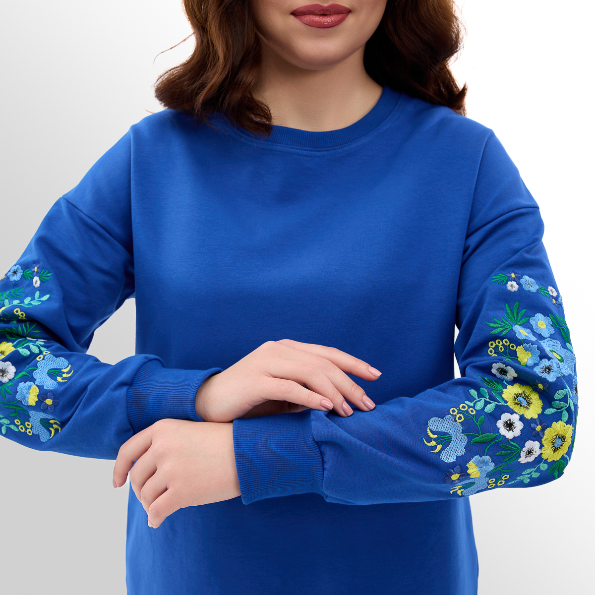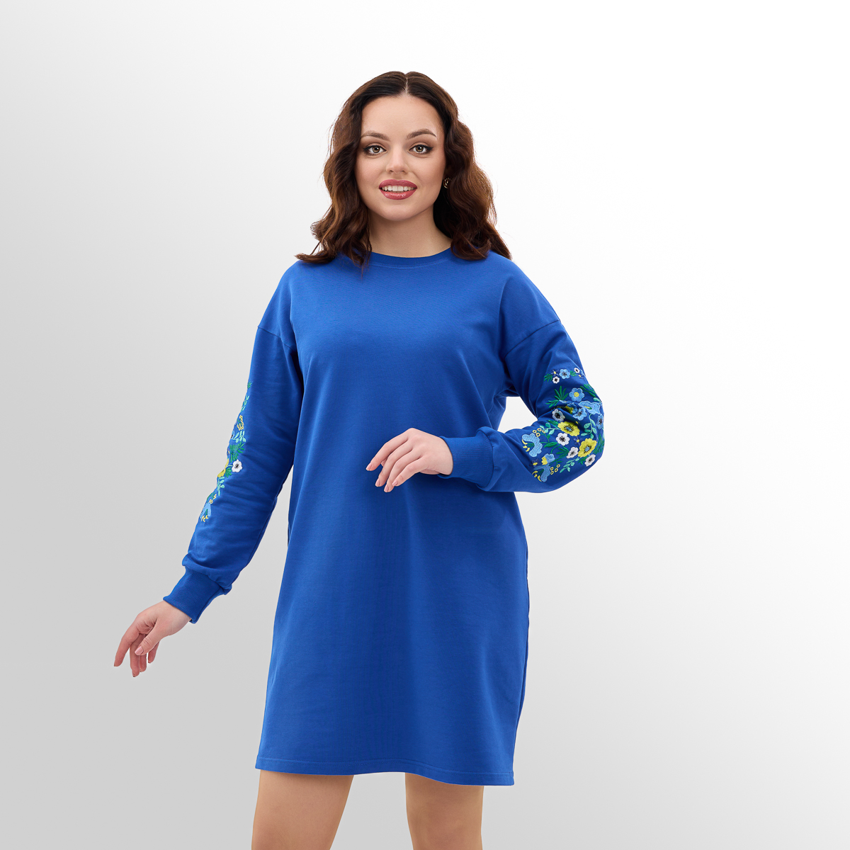 Крой: Платье женское с турецкой двунитки с вышивкой на рукавах. Ткань из натуральных составляющих