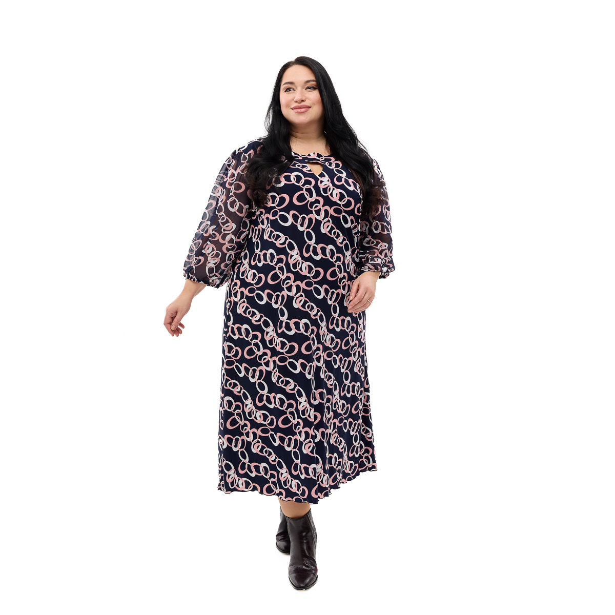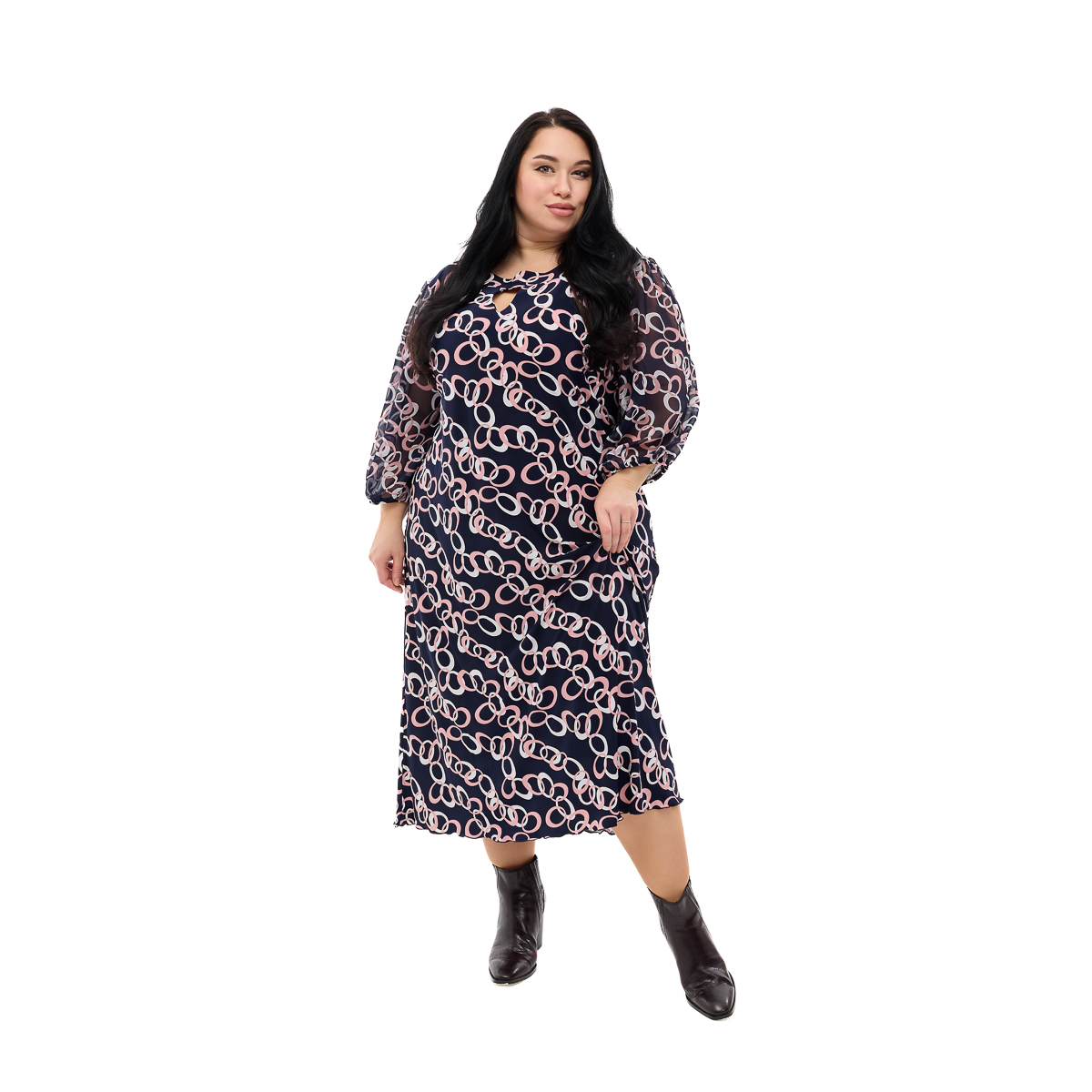 Платье Данелия удивляет своими расцветками! Абстрактные и цепочные узоры хорошо дополнят Ваш образ. Размеры - от 54 по 64. Украшайте этот мир вместе с платьем Данелия!