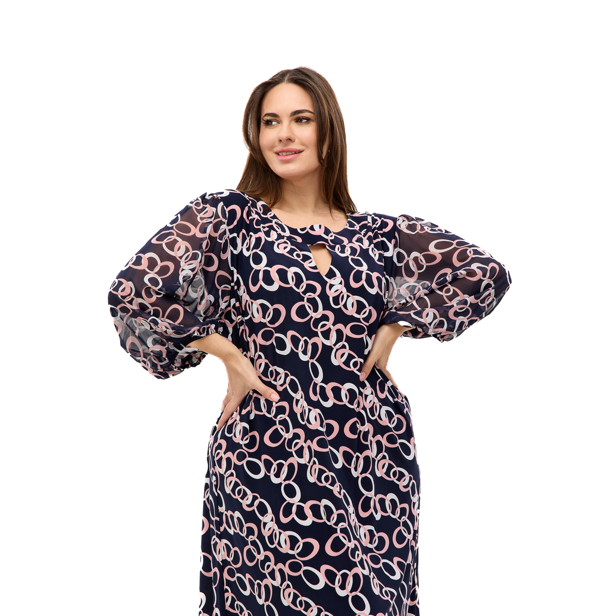 Роскошные шифоновые рукава – легкость и воздушность Полупрозрачные шифоновые рукава добавляют образу загадочности и утонченности. Они красиво струятся при движении, создавая эффект воздушности. Манжеты на резинке не только удобны, но и придают особую изюминку дизайну. Это идеальный баланс между элегантностью и практичностью.