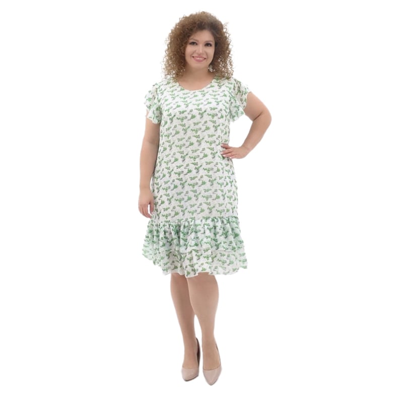 Шифоновые платья всегда придают женственность и притягательность образу. Если шифон выполнен из вискозы, то оно не только комфортно, но и практично. Платье Найджел именно такое! Оно обладает свободной структурой, позволяющей коже дышать, а также совсем не мнется! Визуально образы, созданные с использованием этого платья, легкие и воздушные. И, конечно же, оно имеет подкладку для дополнительного комфорта и уверенности. Прямой крой платья Найджел делает силуэт стройным, а необычные рукавчики и воланы внизу добавляют оригинальности. Однако его особенностью является цветочный принт, который считается самым модным принтом этого сезона. Платье доступно в голубом, сиреневом и зеленом оттенках, а также предлагается в размерах до 54.