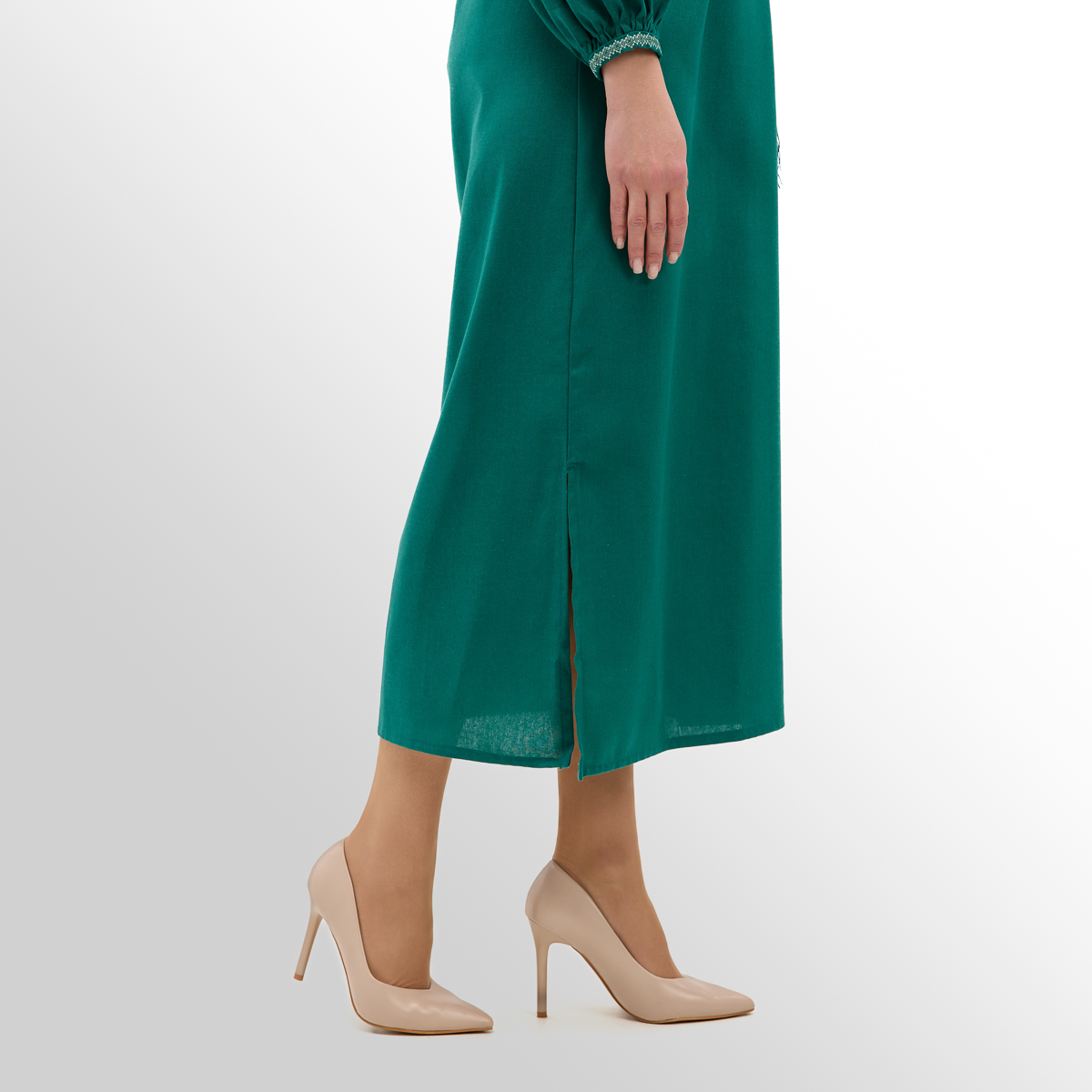 Сукня неймовірної краси, прекрасний смарагдовий колір і орнамент радує. Якість і ціна відмінні. За розміром мені підійшло, сидить красиво по фігурі. Дівчата рекомендую.