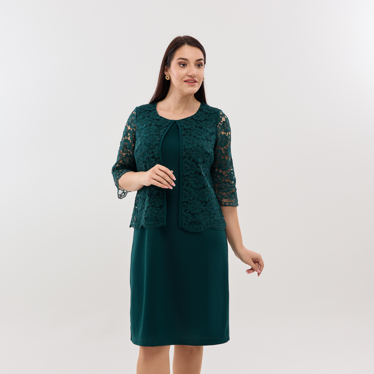 Когда хочется выглядеть эффектно и уверенно, платье Шанталь станет вашим идеальным выбором! Элегантный полуприлегающий крой отлично садится по фигуре. Правильная длина миди - это всегда удобно и элегантно. И изюминка образа - накидка из гипюра премиального качества! Выглядит роскошно, по-королевски! К тому же такое решение визуально скроет лишние сантиметры и сделает фигуру стройнее!