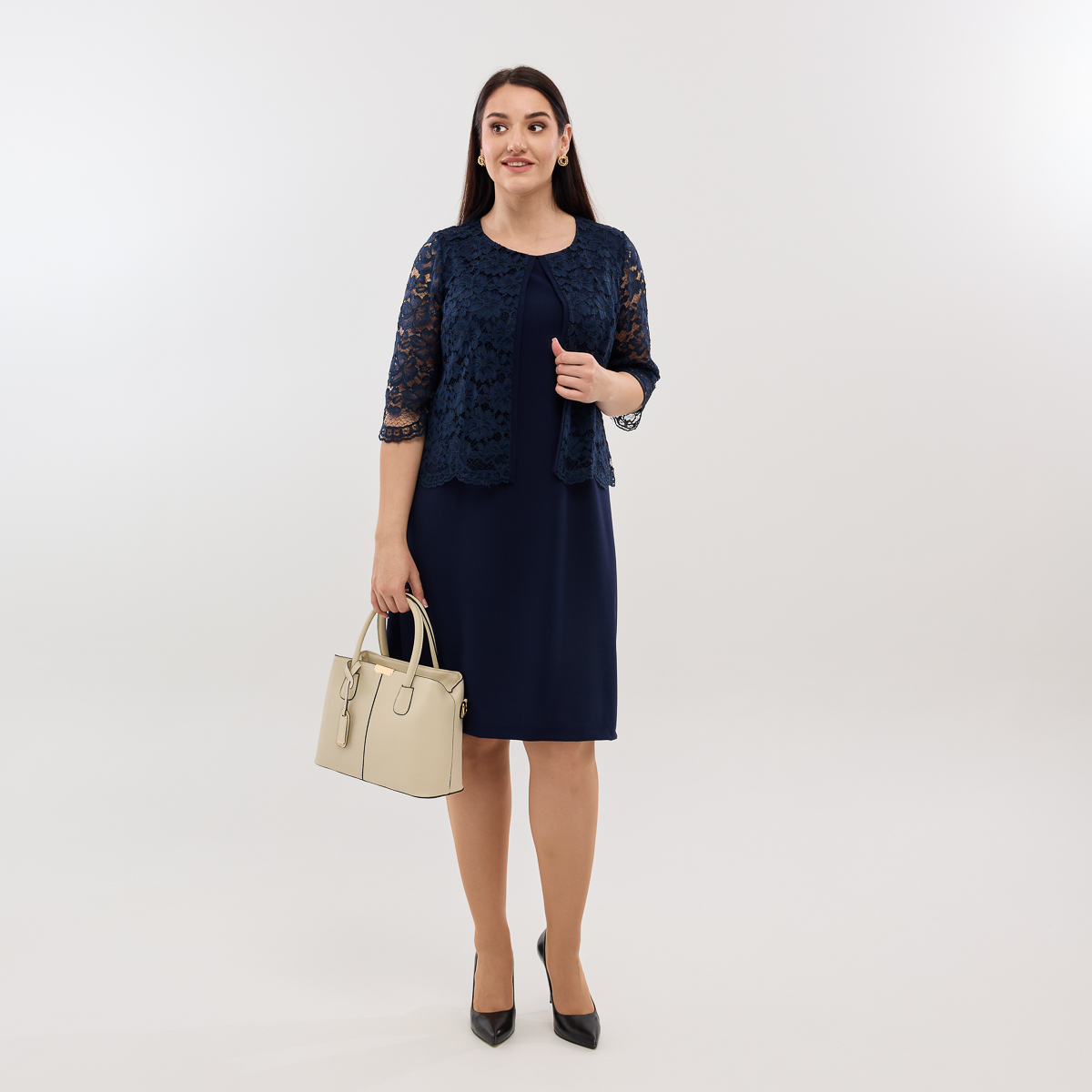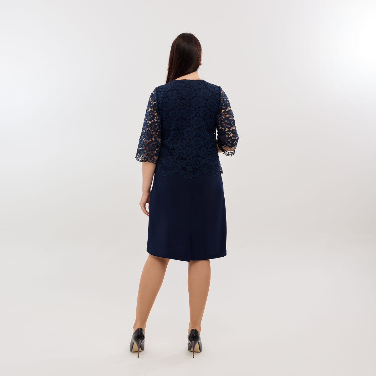 Когда хочется выглядеть эффектно и уверенно, платье Шанталь станет вашим идеальным выбором! Элегантный полуприлегающий крой отлично садится по фигуре. Правильная длина миди - это всегда удобно и элегантно. И изюминка образа - накидка из гипюра премиального качества! Выглядит роскошно, по-королевски! К тому же такое решение визуально скроет лишние сантиметры и сделает фигуру стройнее!