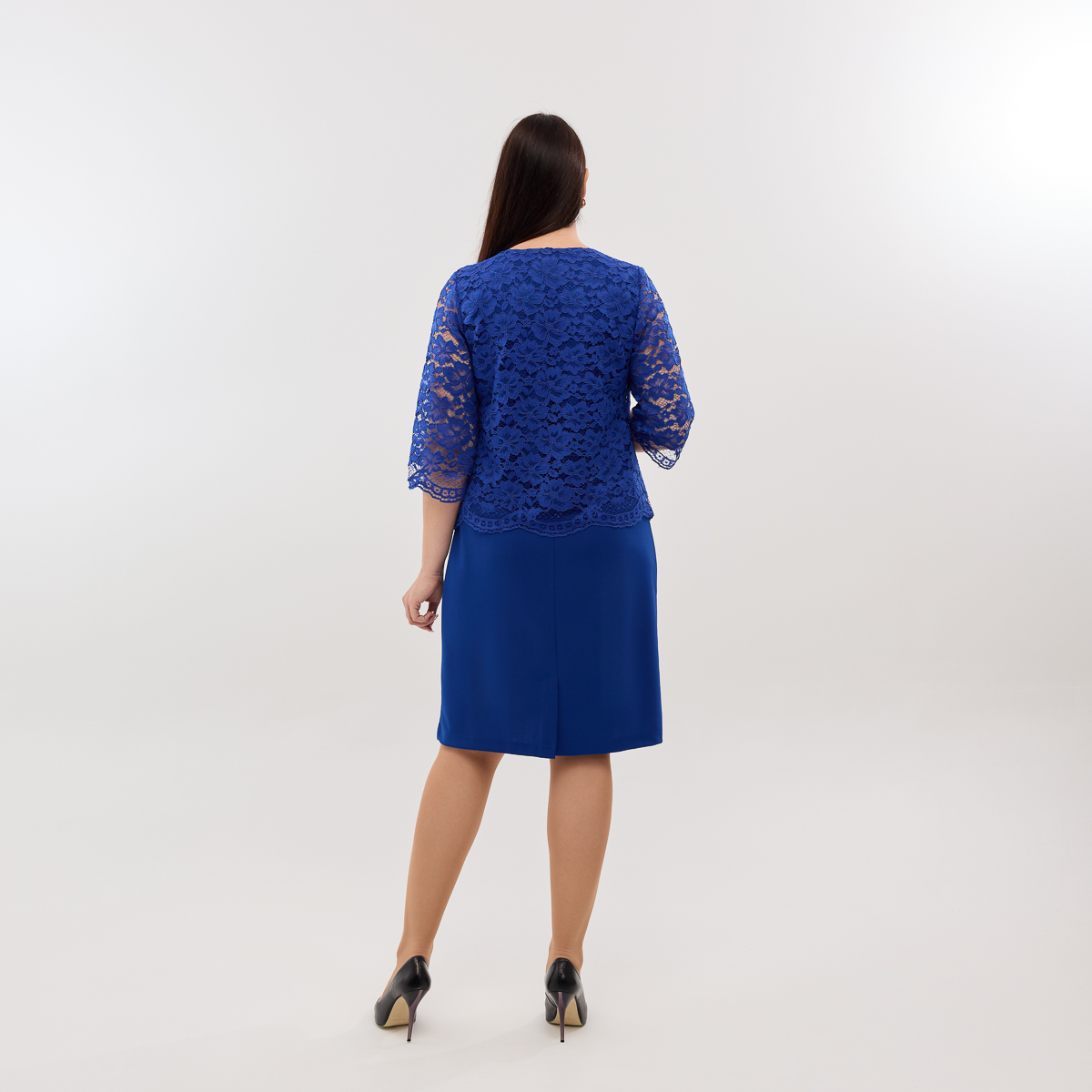 Когда хочется выглядеть эффектно и уверенно, платье Шанталь станет вашим идеальным выбором! Элегантный полуприлегающий крой отлично садится по фигуре. Правильная длина миди - это всегда удобно и элегантно. И изюминка образа - накидка из гипюра премиального качества! Выглядит роскошно, по-королевски! К тому же такое решение визуально скроет лишние сантиметры и сделает фигуру стройнее!