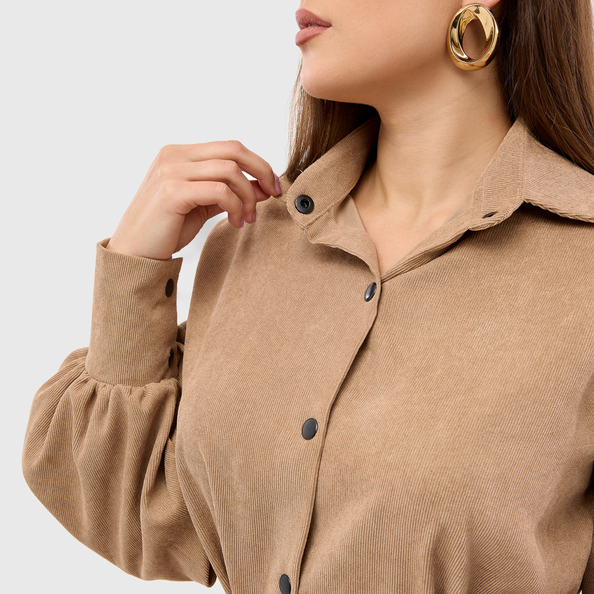 Стильный и универсальный крой. Модель платья-рубашки - это настоящий must-have в гардеробе современной женщины! Свободный фасон подходит для любого типа фигуры, обеспечивая комфортную посадку. А миди-длина визуально вытягивает силуэт и добавляет изящества.