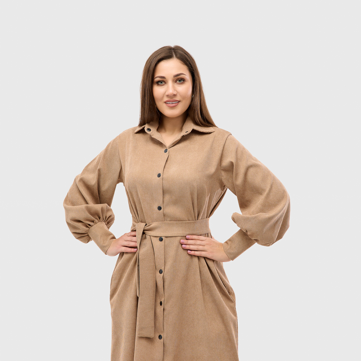 Материал премиум-класса. Платье выполнено из высококачественного вельвета, который отличается роскошной текстурой и стильным внешним видом. Вельвет - это не только элегантность, но и износостойкость, что делает платье долговечным и комфортным в носке.
