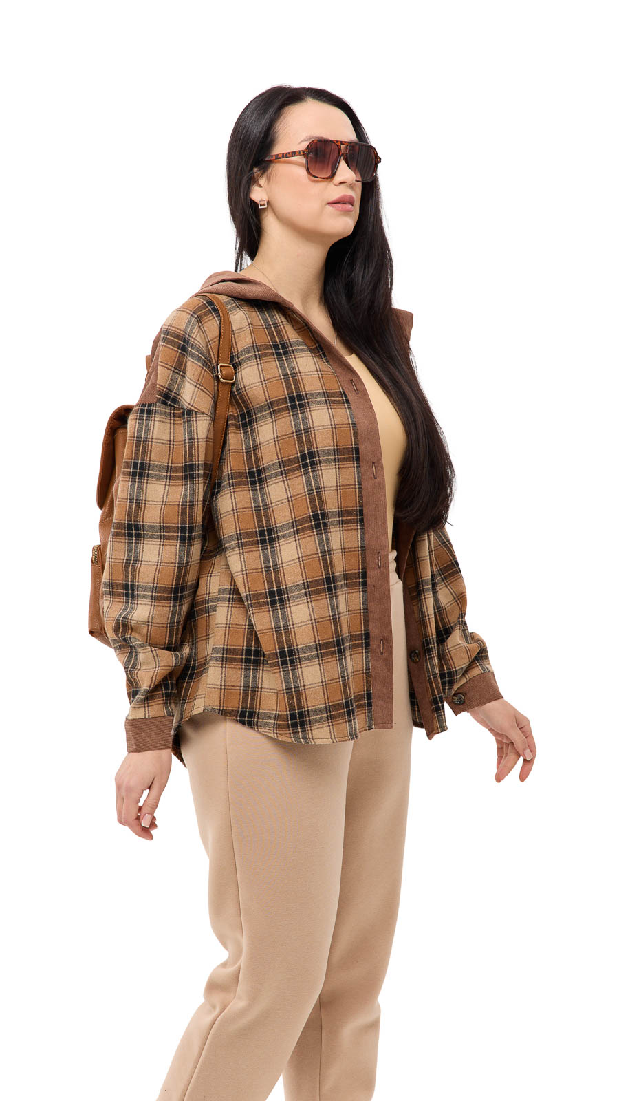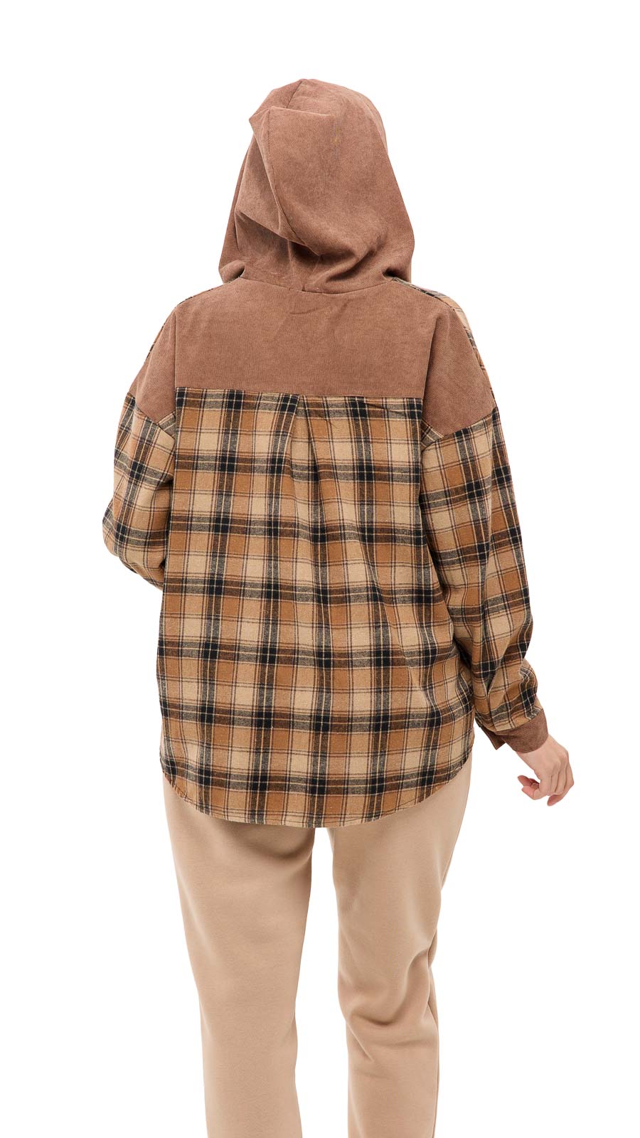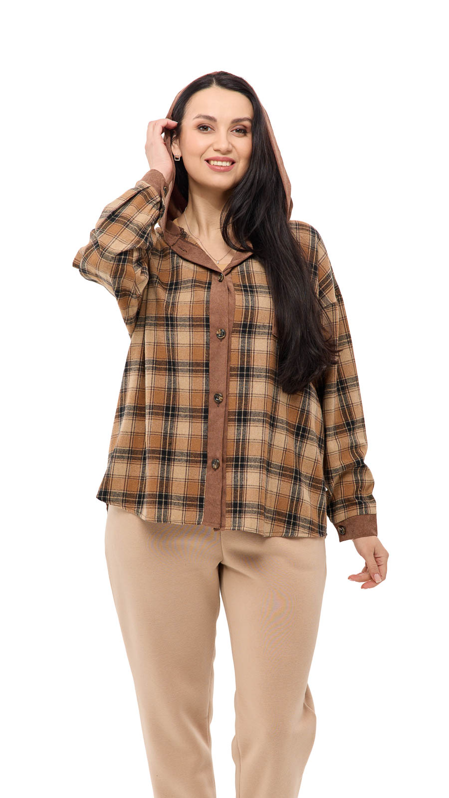 Особый акцент — капюшон, который добавляет образу спортивно-casual настроение и делает вещь ещё более практичной в прохладную погоду. Клетчатый принт выглядит стильно и универсально, а вставки из вельвета (на капюшоне/элементах отделки) добавляют фактурности и “дорогого” вида. Рубашку Мелли можно носить как самостоятельный верх или как лёгкую накидку поверх футболки или топа — она отлично сочетается с джинсами, леггинсами и кроссовками.