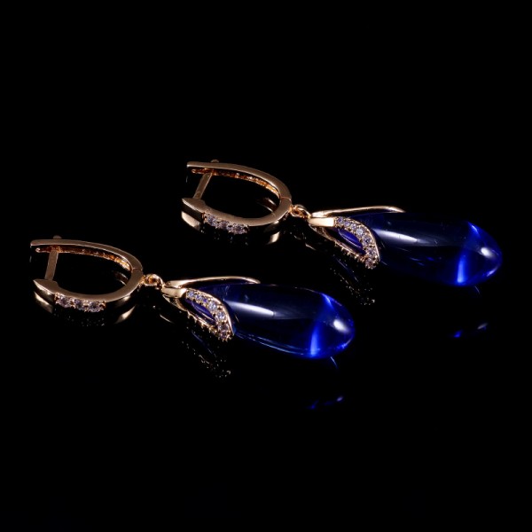 Большой диаманит каплевидной формы цвета благородного сапфира закреплен на золотистом основании. Эти серьги не останутся незамеченными! Они не дополняют, они подчиняют!