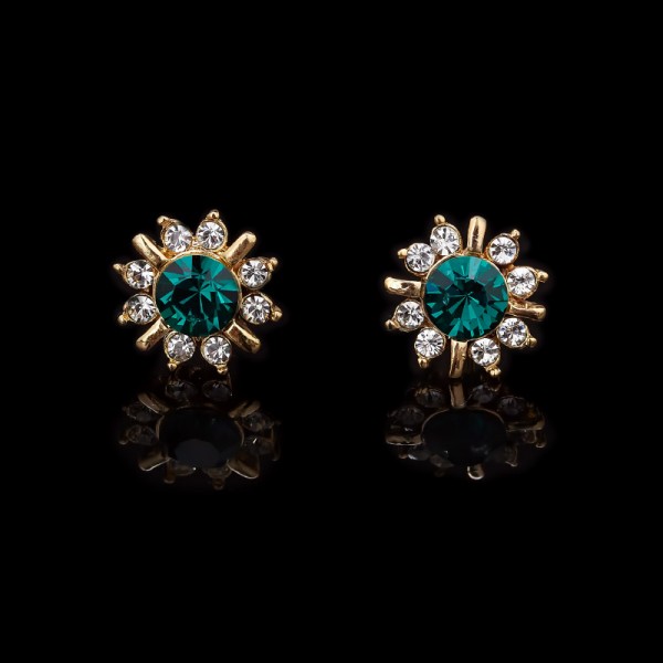 Серьги "Весна в золоте" - это замечательные пуссеты, являющиеся необходимым аксессуаром для каждой женщины. Диамантит цвета сапфира подчеркивается прозрачными кристаллами. Украшение выполнено из 24-каратного золотого/родиевого покрытия, позолоченная золотом/родием застежка.
