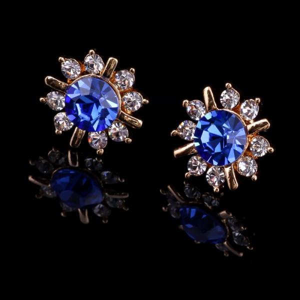 Серьги "Зима в золоте" - это замечательные пуссеты, которые являются необходимым аксессуаром для каждой женщины. Диаманит цвета сапфира подчеркнут прозрачными кристаллами. Украшение выполнено с 24-каратным золотым/родиевым покрытием, позолоченная золотом/родием застежка.