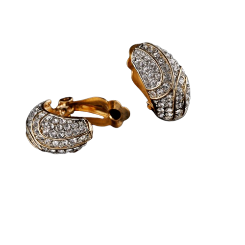 Представляем вашему вниманию Серьги Золотое Руно. Это модные украшения сезона с наполненными формами. Клипсы украшены прозрачными кристаллами и позолоченным орнаментом.