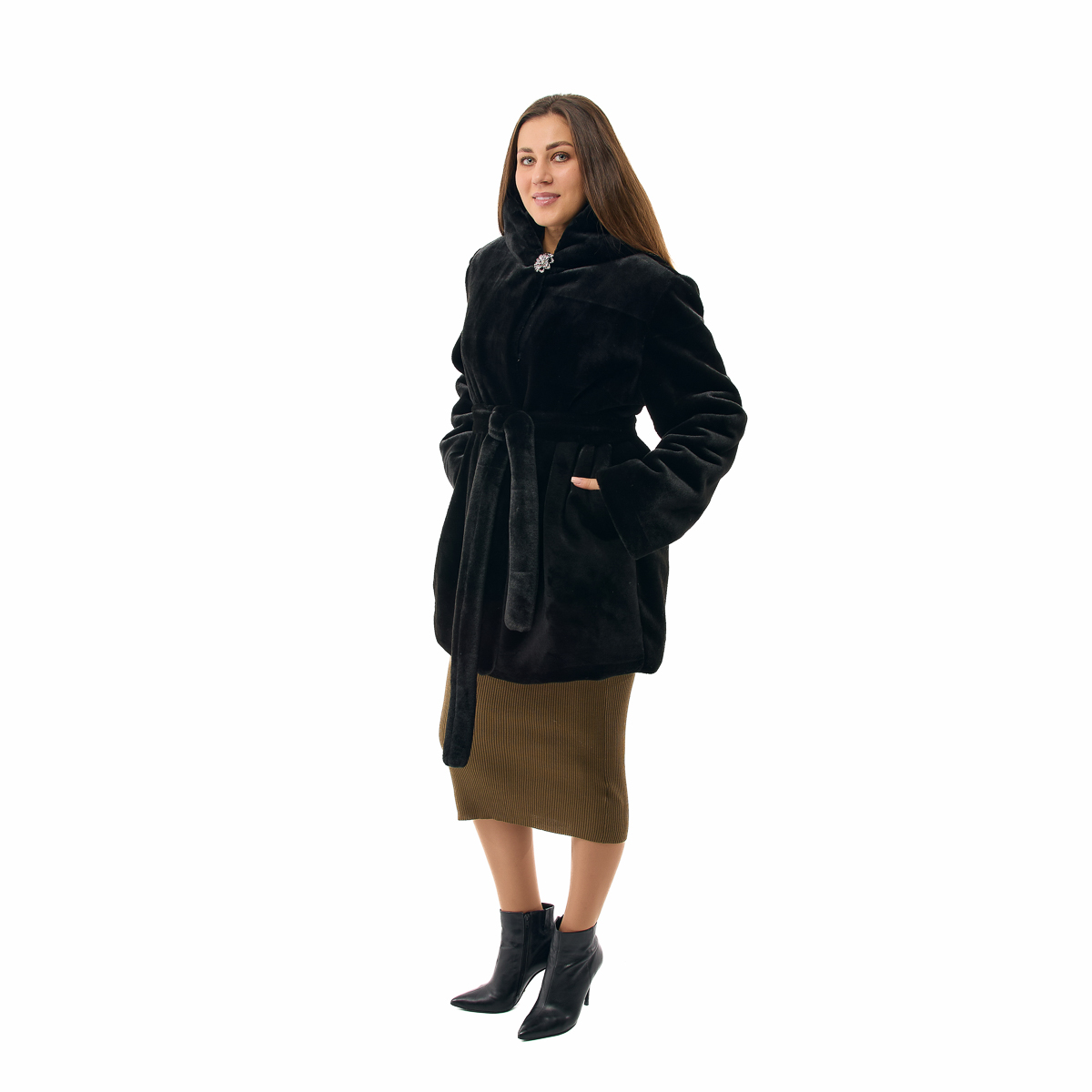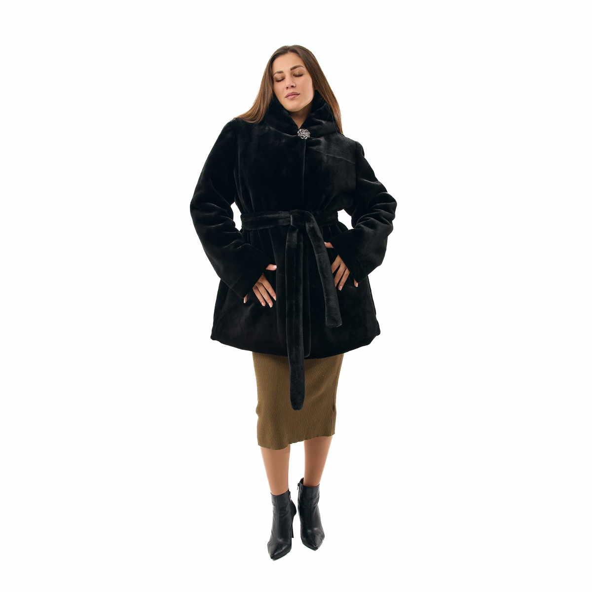 Шуба Феерия - идеальный выбор для холодных зимних дней, ее стильный капюшон добавит изюминку образу. С ней вы будете чувствовать себя уютно и комфортно при любой погоде, и выглядеть просто великолепно! Трапециевидный силуэт с поясом красиво подчеркнет вашу фигуру. Три превосходных цвета - черный, коричневый и темно-серый - идеально подчеркнут ваш статус. Дизайнерская декоративная пуговица добавит элегантности. Феерия - это не просто шуба, это произведение искусства, добавляющее уверенности и шарма в любой ситуации. Ощущение натурального меха, но при этом экономия средств! Позвольте себе роскошь с шубой Феерия без непомерных расходов! Ваши мечты становятся реальностью с шубой Феерия от Распакуй TV!