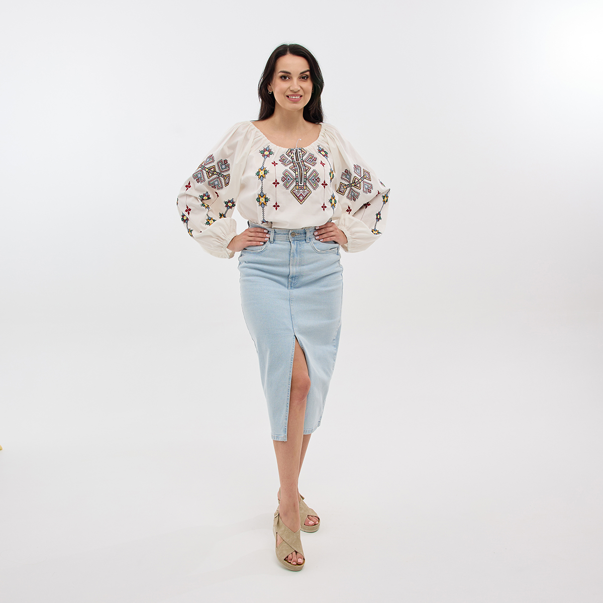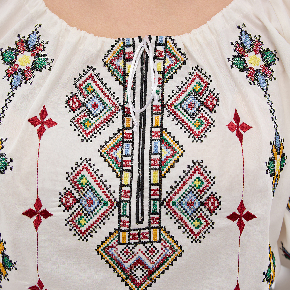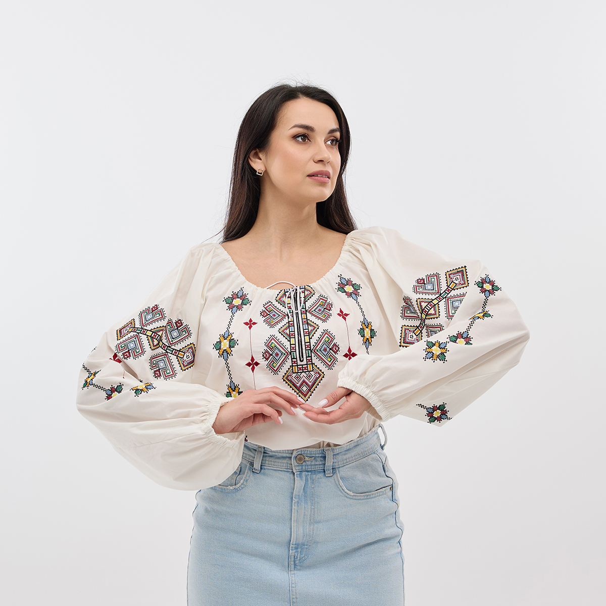 Рубашка Зореслава станет вашим любимым элементом гардероба! Ее можно сочетать как с классическими, так и с современными образами. Крой-трапеция выгодно подчеркнет фигуру. Комфорт в каждом движении! Рукава-фонарики с элегантной застежкой на пуговицу. Придадут образу особой грации! Изысканный воротничок-стойка добавляет рубашке благородного вида. Обратите внимание на изящную украинскую вышивку! Каждый узор полон глубокого смысла. Премиальная натуральная ткань! Обеспечит комфорт и долговечность! В наличии молочный, белый и черный цвета. Широкий размерный ряд!