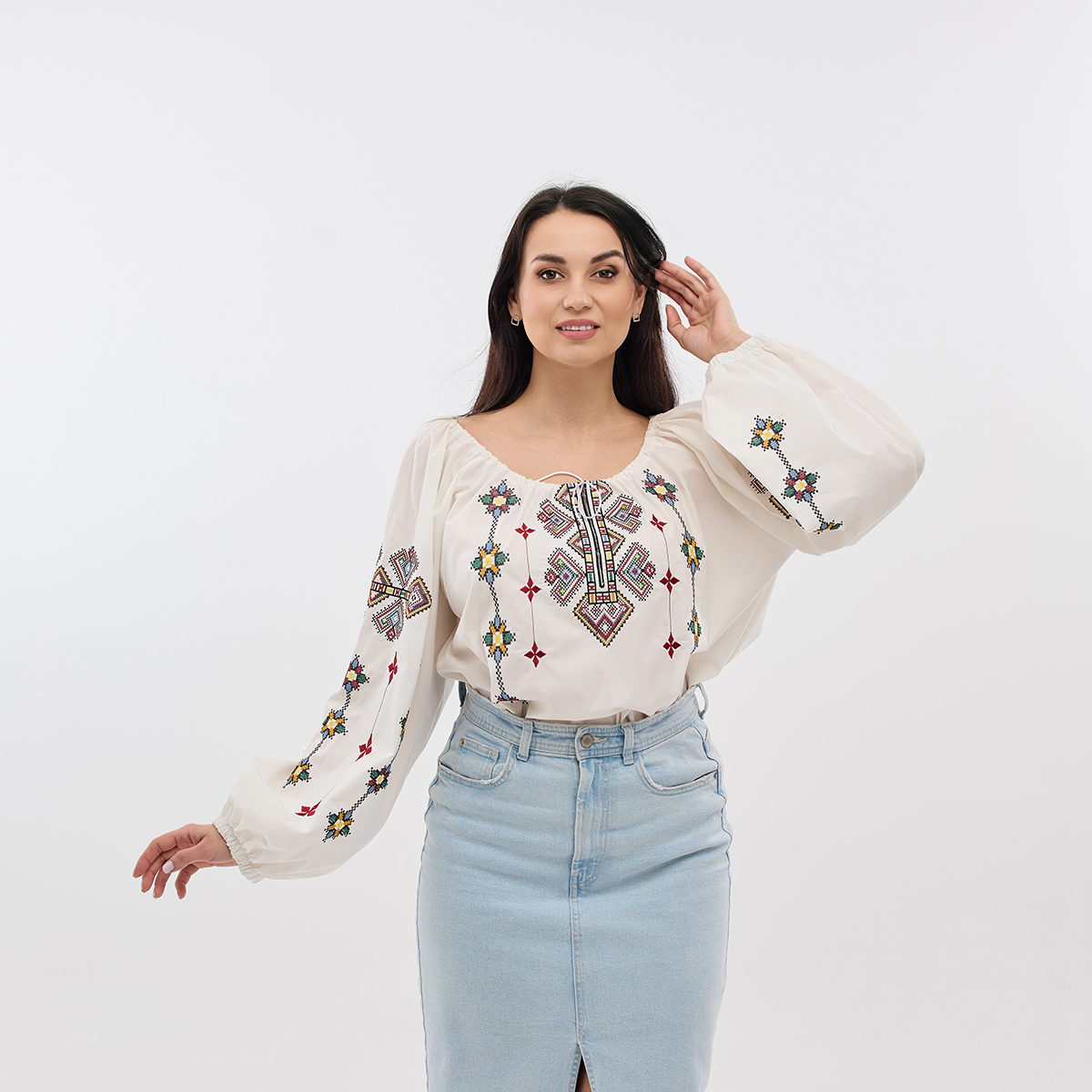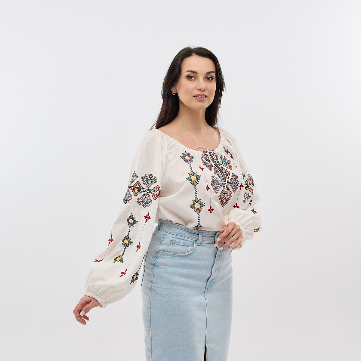 Рубашка Зореслава станет вашим любимым элементом гардероба! Ее можно сочетать как с классическими, так и с современными образами. Крой-трапеция выгодно подчеркнет фигуру. Комфорт в каждом движении! Рукава-фонарики с элегантной застежкой на пуговицу. Придадут образу особой грации! Изысканный воротничок-стойка добавляет рубашке благородного вида. Обратите внимание на изящную украинскую вышивку! Каждый узор полон глубокого смысла. Премиальная натуральная ткань! Обеспечит комфорт и долговечность! В наличии молочный, белый и черный цвета. Широкий размерный ряд!