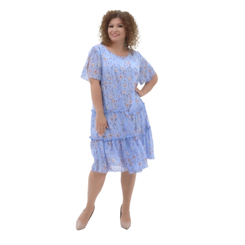 Взгляните на этот роскошный наряд! Прекрасный шифон в благородной акварельной гамме, украшенный изысканным цветочным орнаментом. Свободный крой платья, акцентированный воланами, нежно подчеркнет женственность и природную красоту вашей фигуры, а также искусно скроет любые неровности. Трикотажная подкладка на хлопковой основе гарантирует полную уверенность в комфорте и модности!
