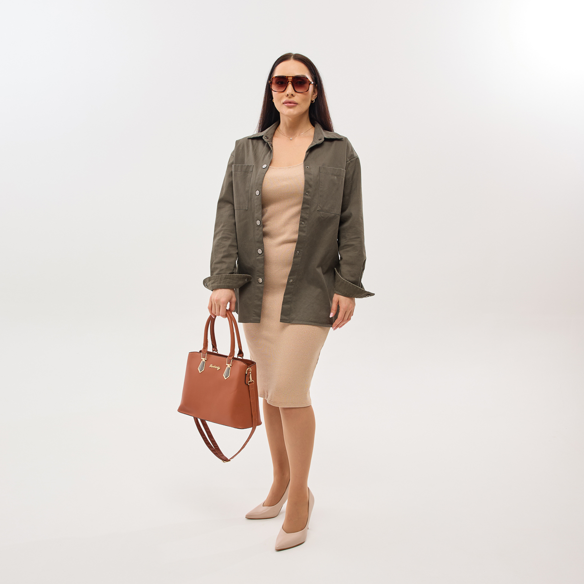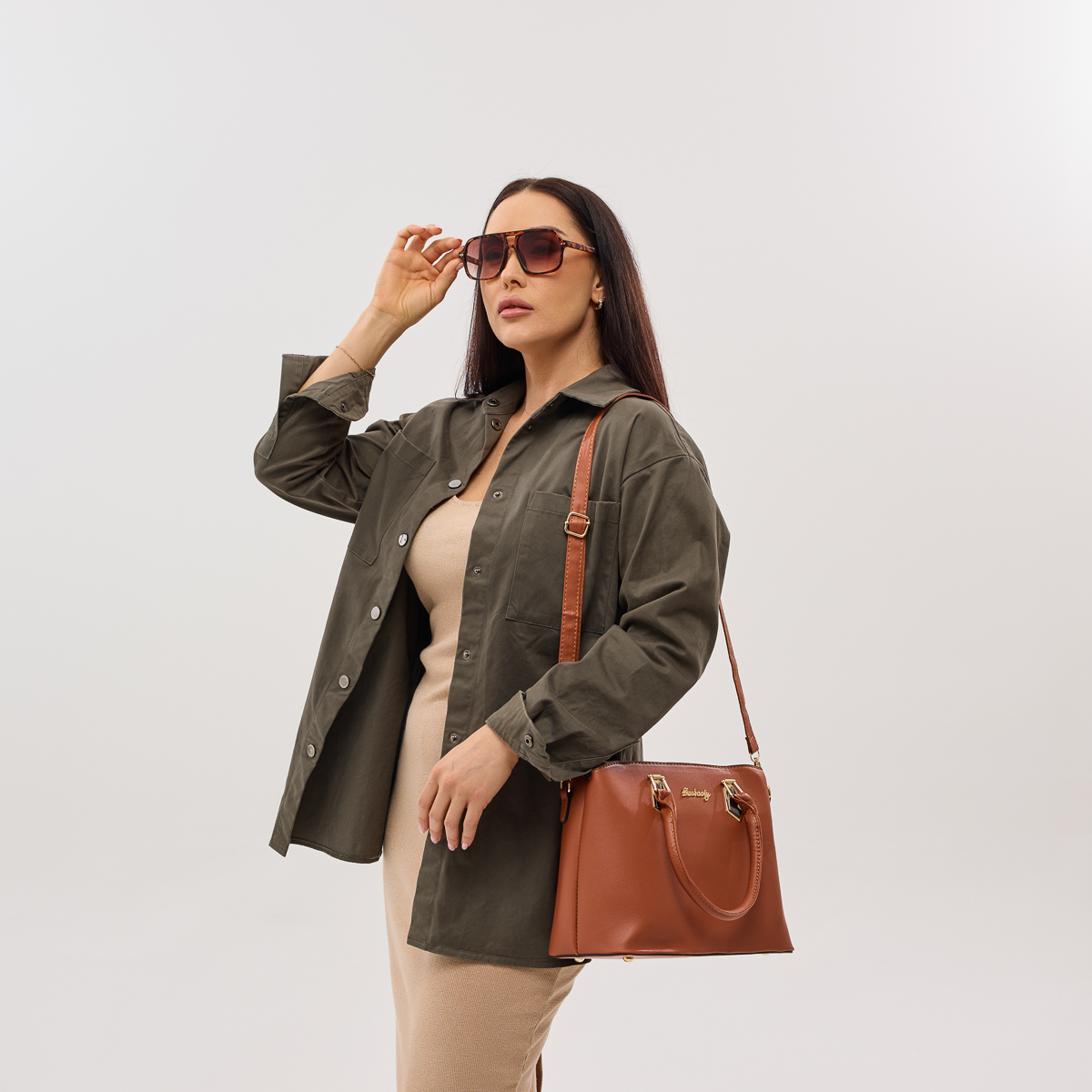 Основная сумка размером 32×13×37 см идеальна по вместительности: подходит и для деловых бумаг, и для женской косметички. Дополнительная мини-сумочка 24×18×8 см станет отличным спутником для прогулок, встреч и поездок. Удобный плечевой ремешок позволяет трансформировать образ – носите сумку на плече или в руке.