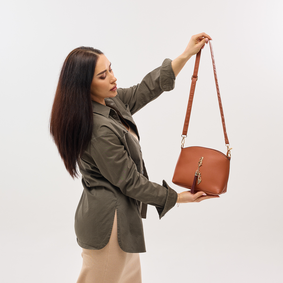 Сумка выполнена из плотной, но мягкой на ощупь эко-кожи, которая устойчива к истиранию, сохраняет форму и выглядит дорого. Такой материал отлично переносит ежедневное использование и легко очищается, не требуя особого ухода.