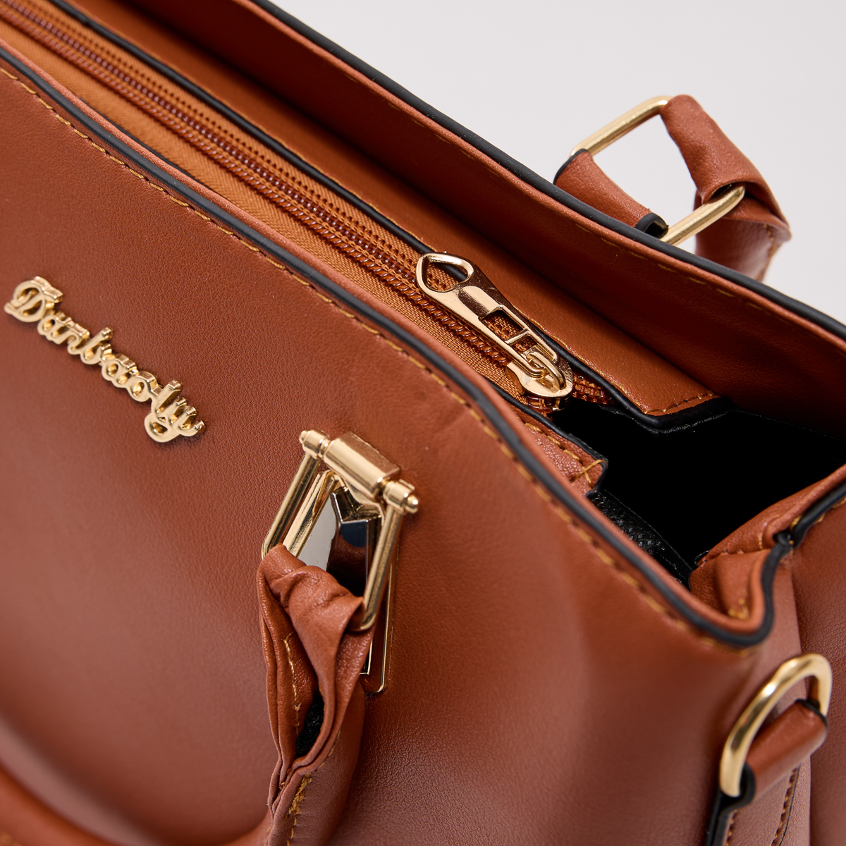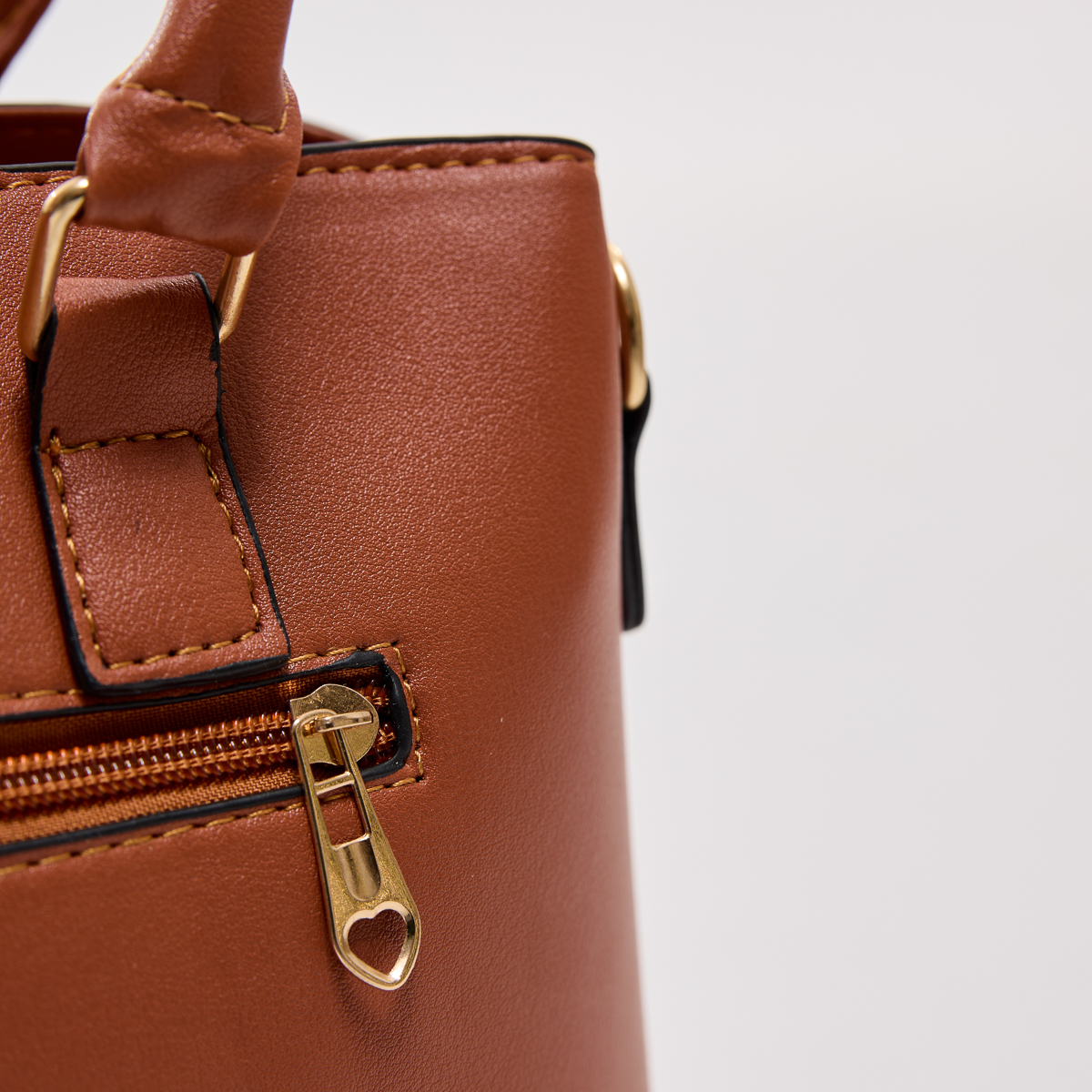 Внутри сумки предусмотрены два просторных основных отделения, каждое из которых оснащено дополнительными кармашками: одно — на молнии, другое — с открытым доступом. Между ними — отдельный отсек для хранения документов или планшета. Всё разложено по местам, и не нужно больше перерывать всю сумку в поисках мелочей.