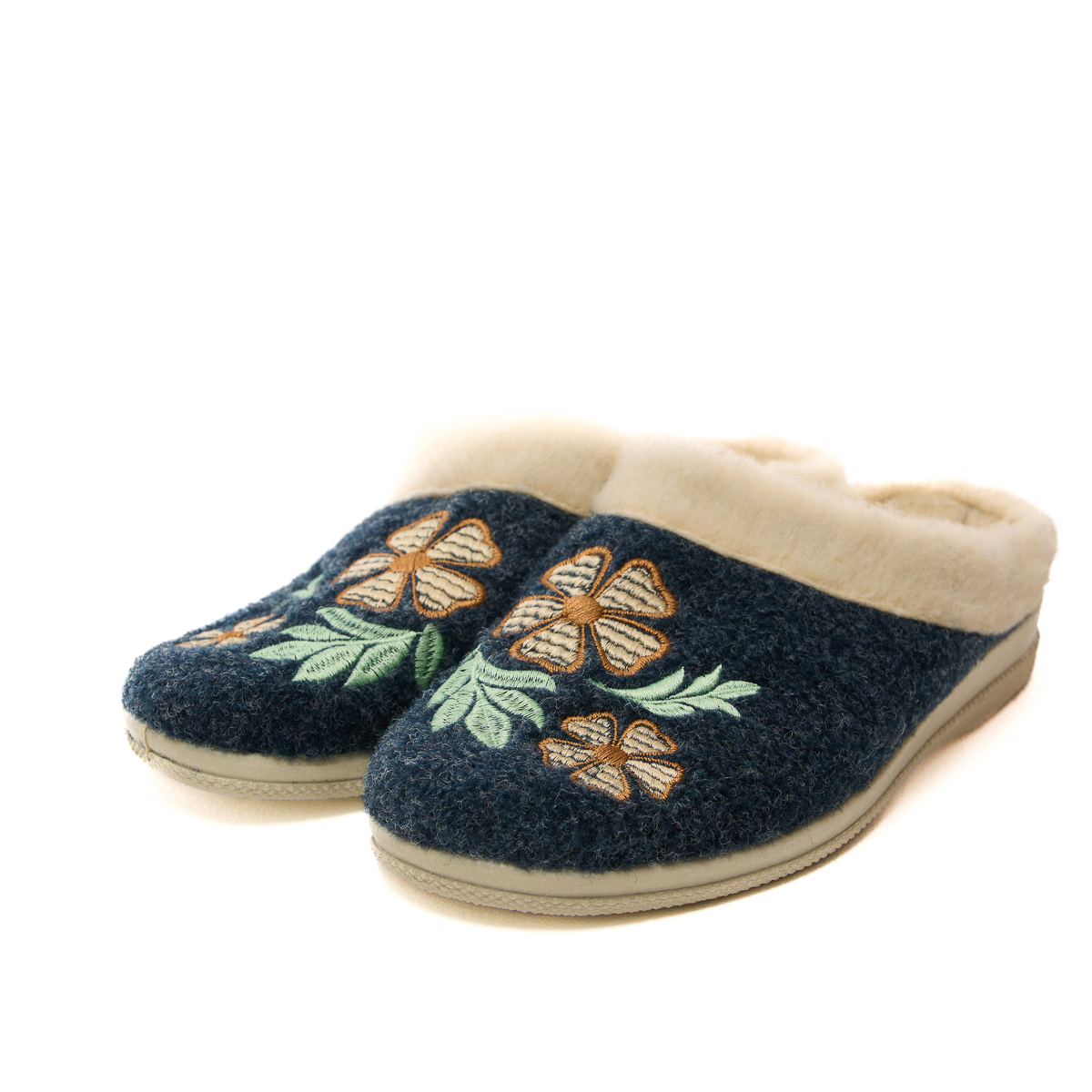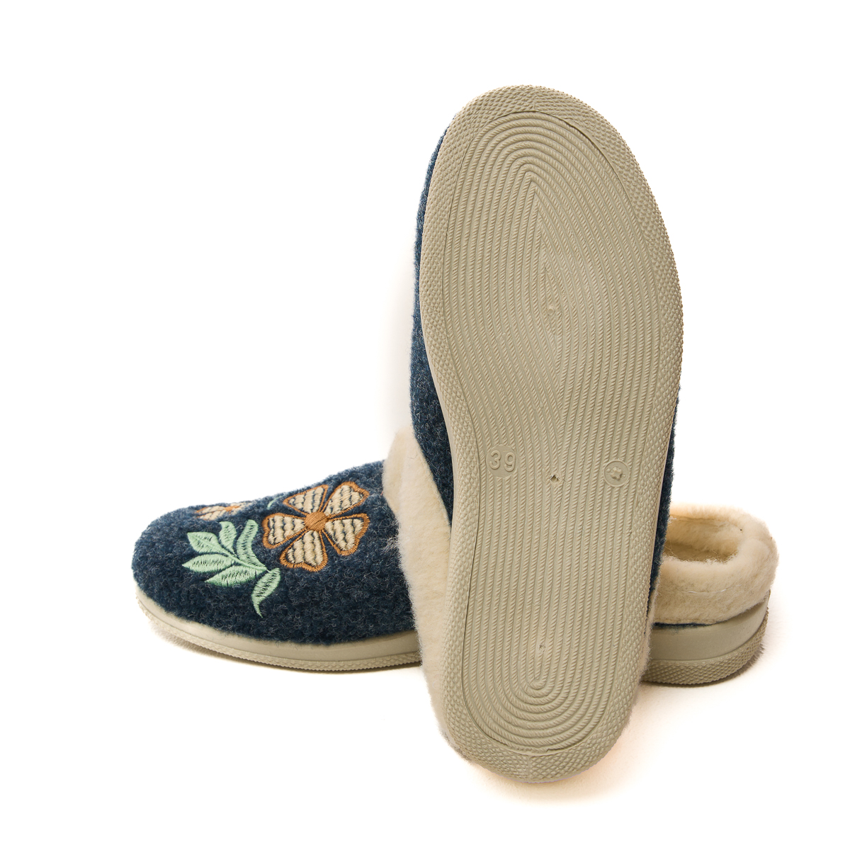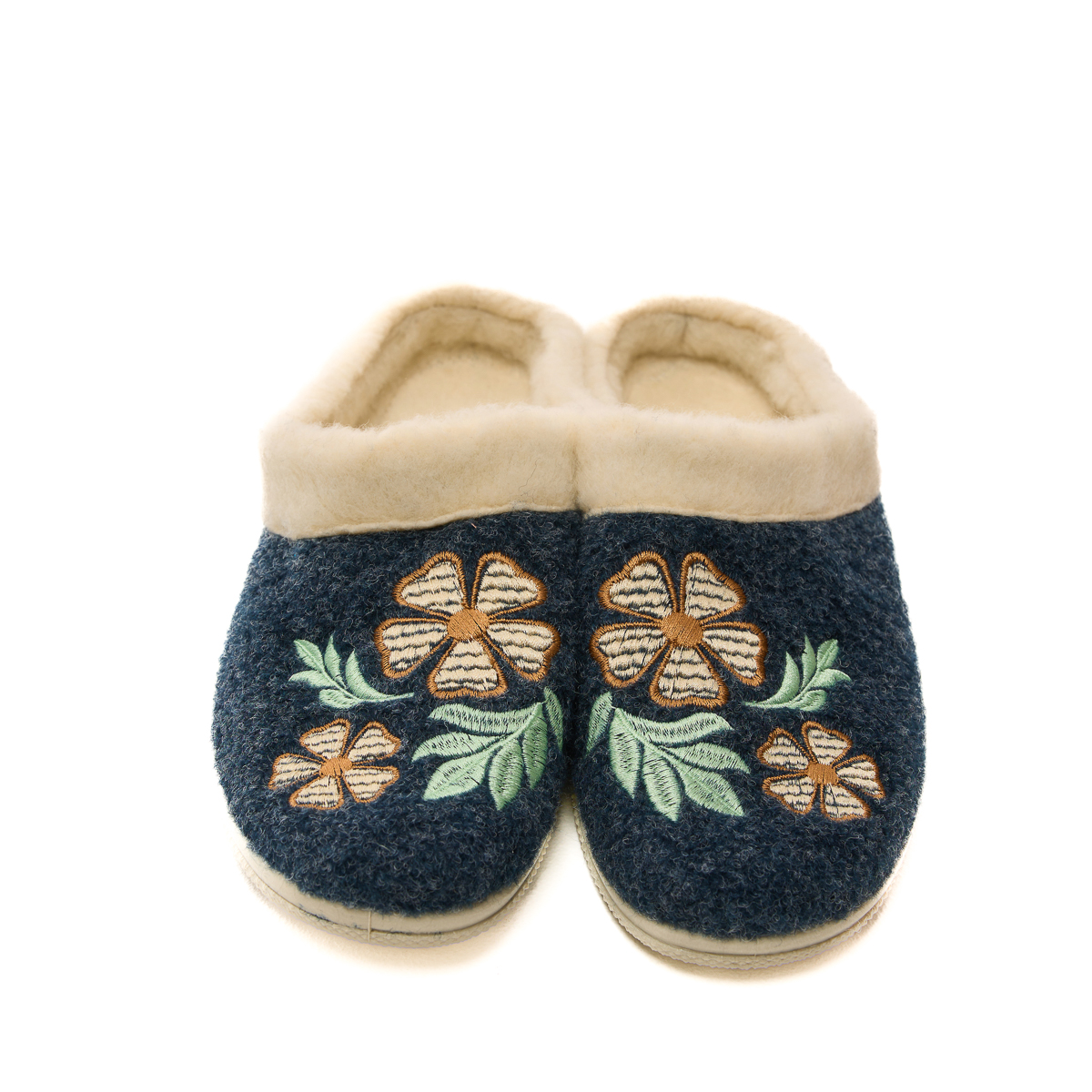 Верх тапочек изготовлен из плотного войлока. А это значит, что тапочки не протрутся, не растянутся! Будьте уверены - тапочки прослужат Вам долгие годы! И только взгляните на этот удивительный цветочный орнамент. Так красиво, так по-домашнему!