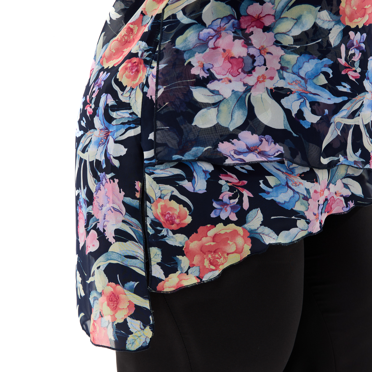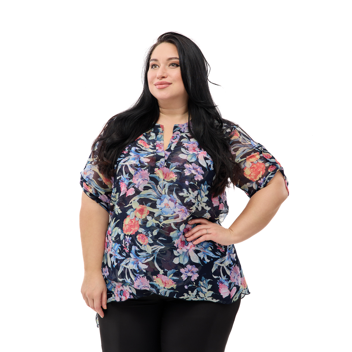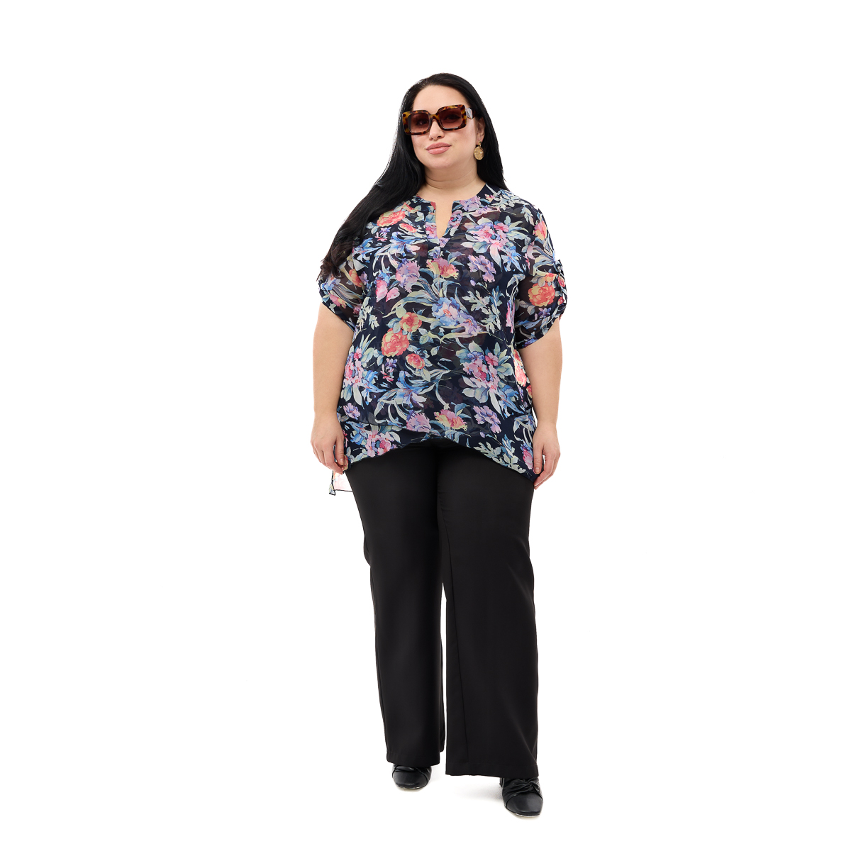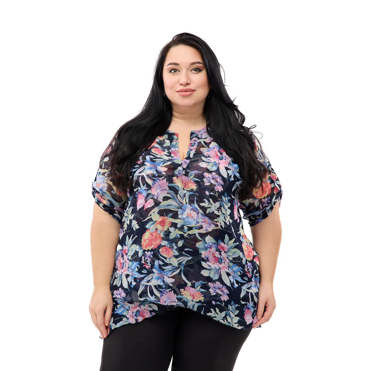 Нежный шифон на основе шелка изящно спадает по фигуре! Образ невероятно легкий и женственный. Стильный цветочный принт освежает и омолаживает! При этом всегда будет в моде! На выбор множество вариантов! И такой необычный крой! Эффект запаха внизу и регулируемый рукав деликатно нивелируют нюансы фигуры, а классический вырез и воротник стойка отлично акцентируют внимание на портретной зоне! Такая туника не останется незамеченной! В любой ситуации вы будете на высоте! Всегда стройная и привлекательная! Качественный шифон не боится многократной стирки, отлично сохраняет яркость красок и не меняет форму! Туника Флора – это покупка на долгие годы!