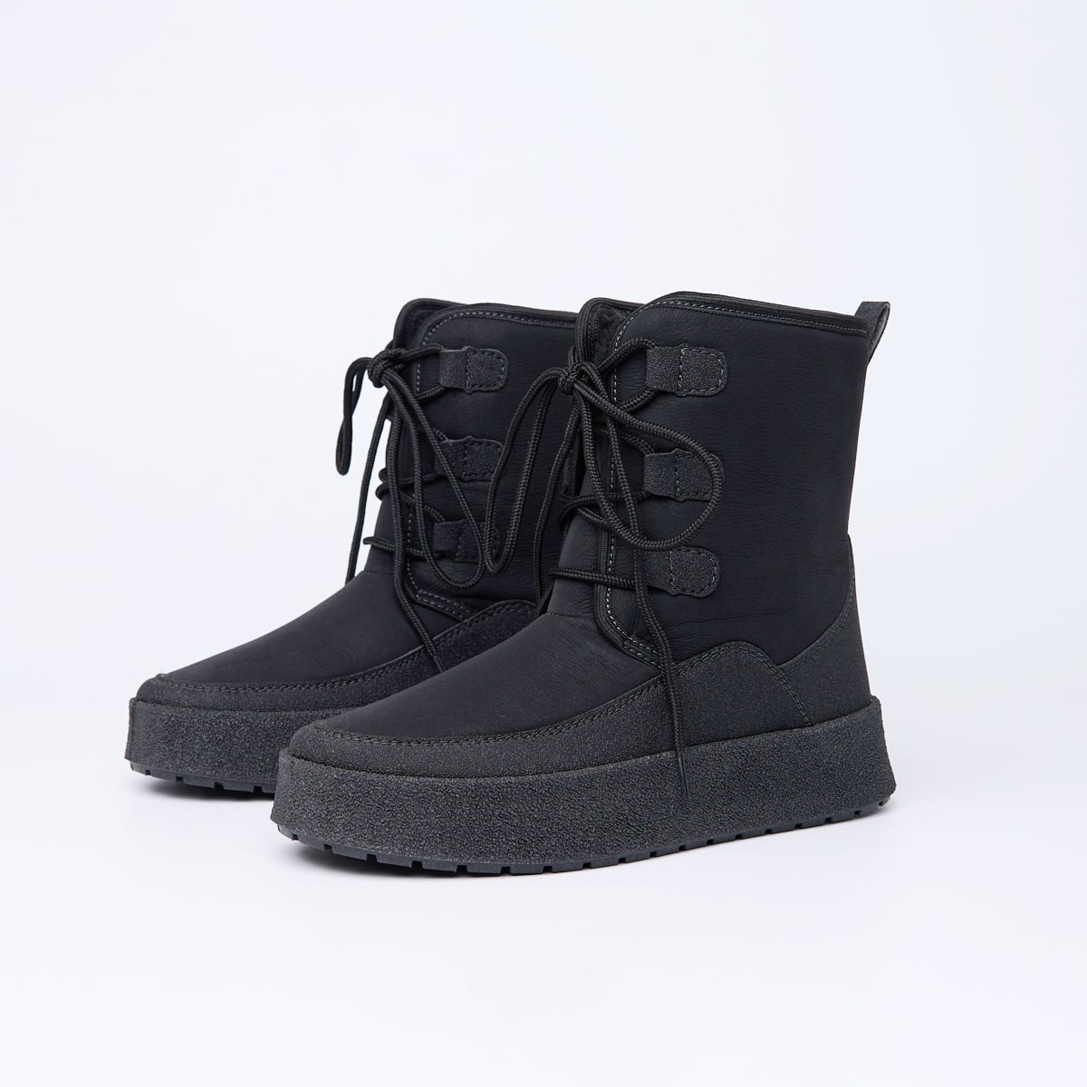 Внутрішнє оздоблення з теплого еко-хутра та анатомічна форма устілки забезпечують м’якість і термоізоляцію. Навіть при тривалому носінні ноги залишаються в теплі й без втоми.