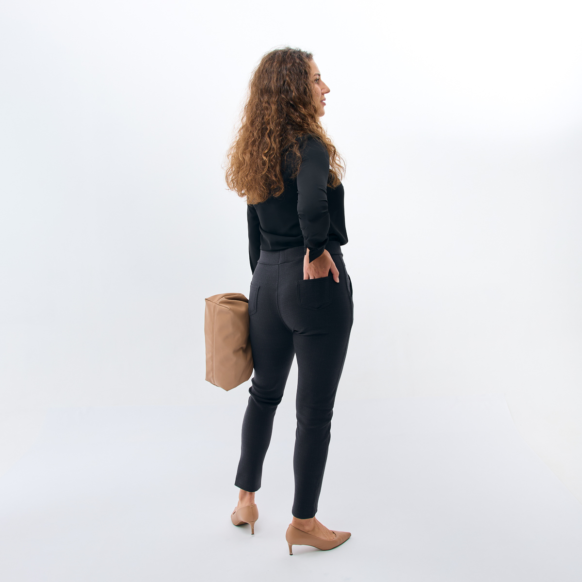 Не можу не згадати й про те, як вони сідають на фігуру. Еластична тканина, інноваційні технології пошиття і детально розроблений крій роблять їх справжнім твором мистецтва. Брюки акцентують на талії, витончено огортаючи фігуру, не обмежуючи рухів. А прикрашені стразами кишені доповнюють образ вишуканою елегантністю, при цьому виконуючи свою основну функцію.