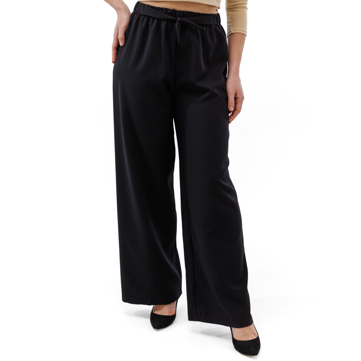 Висока посадка та пояс на резинці підкреслять Вашу талію і приховають зайві сантиметри. Вільний крій брюк забезпечить ідеальну посадку на будь-який тип фігури.