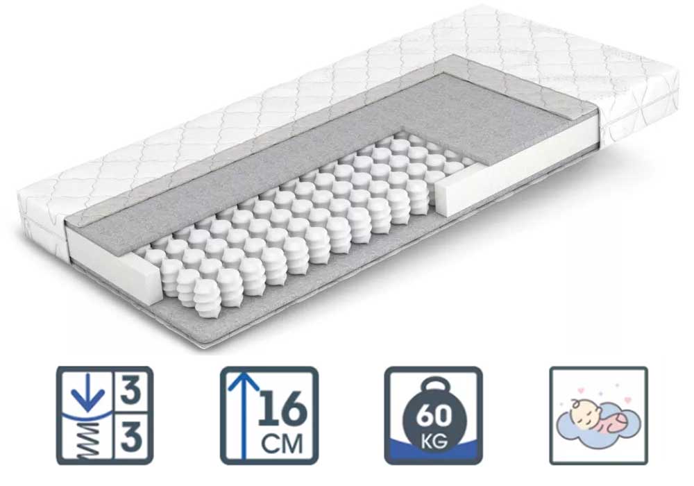 • Pocket Spring. Блок незв'язаних пружин з міцної сталі гарантує точкову підтримку м'язів та хребта дитини.