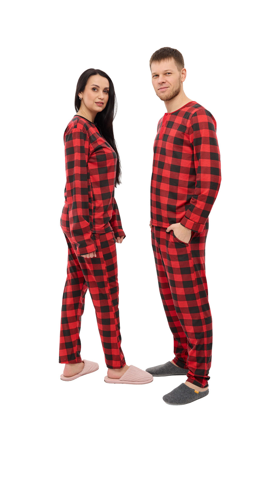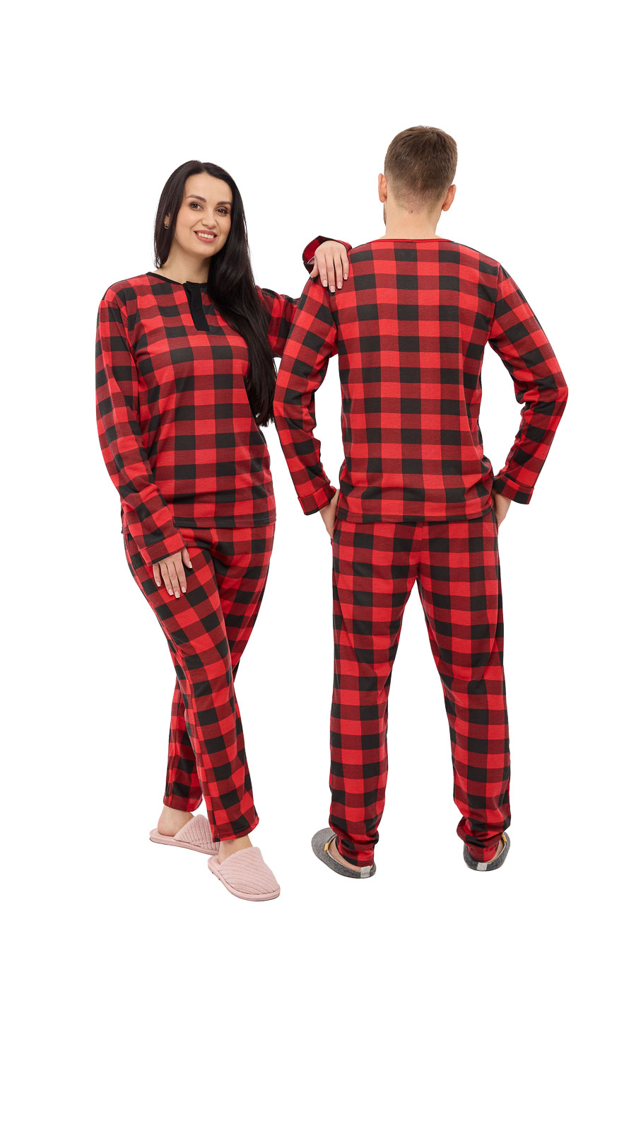 Наші ретельно продумані колірні комбінації піднімуть вам настрій, додавши веселу нотку до вашого домашнього гардеробу: чоловічі комплекти доступні в класичних сірих та синіх відтінках, а жіночі варіанти вміло поєднують рожевий та сірий кольори.