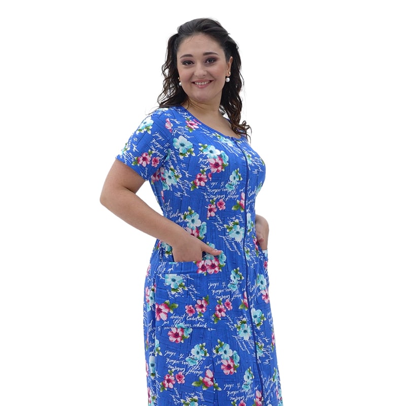 Сукня Марго - це втілення вдосконаленості в світі домашнього одягу! Зручний традиційний дизайн з блискавкою та відповідна довжина забезпечують неперевершений комфорт! Ідеально підходить для побутових завдань, для релаксації, а також для відпочинку в санаторії чи на дачі! У палітрі кольорів - блакитний, рожевий, синій та лавандовий! Сукня пошита з куліру - матеріалу, неймовірно приємного до шкіри! Він чудово пропускає повітря і майже не мнеться! Сукня Марго здатна витримати багаторазове прання і прослужить вам багато років! У домашній сукні Марго від Розпакуй TV ви будете виглядати як чарівна, аккуратна господиня, так і чудова жінка для свого супутника!