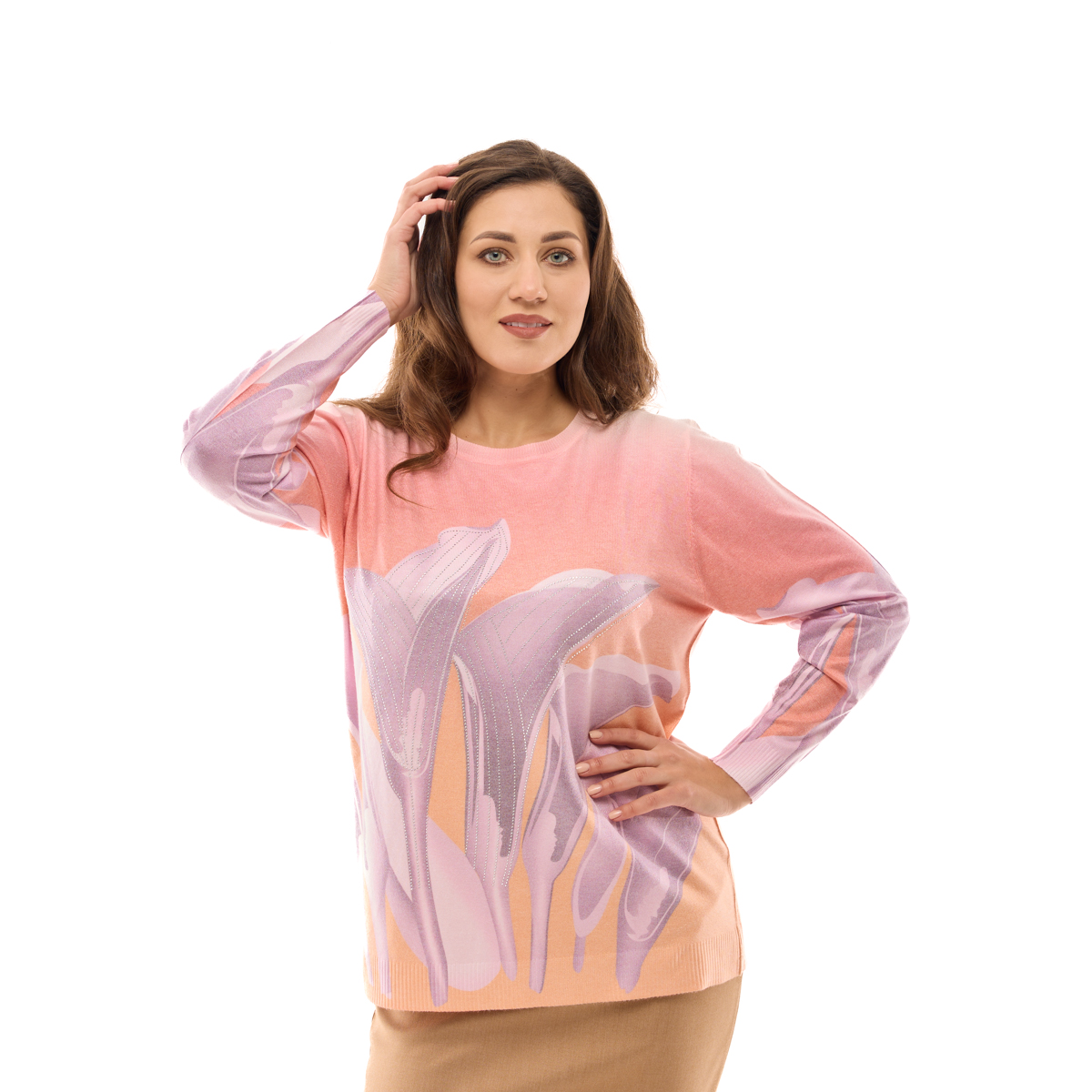 Джемпер Аліса - цей стильний і елегантний предмет гардероба по праву можна назвати витвором мистецтва. Унікальний квітковий візерунок робить модель неймовірно жіночною і привабливою.
