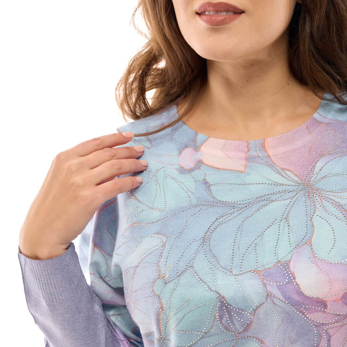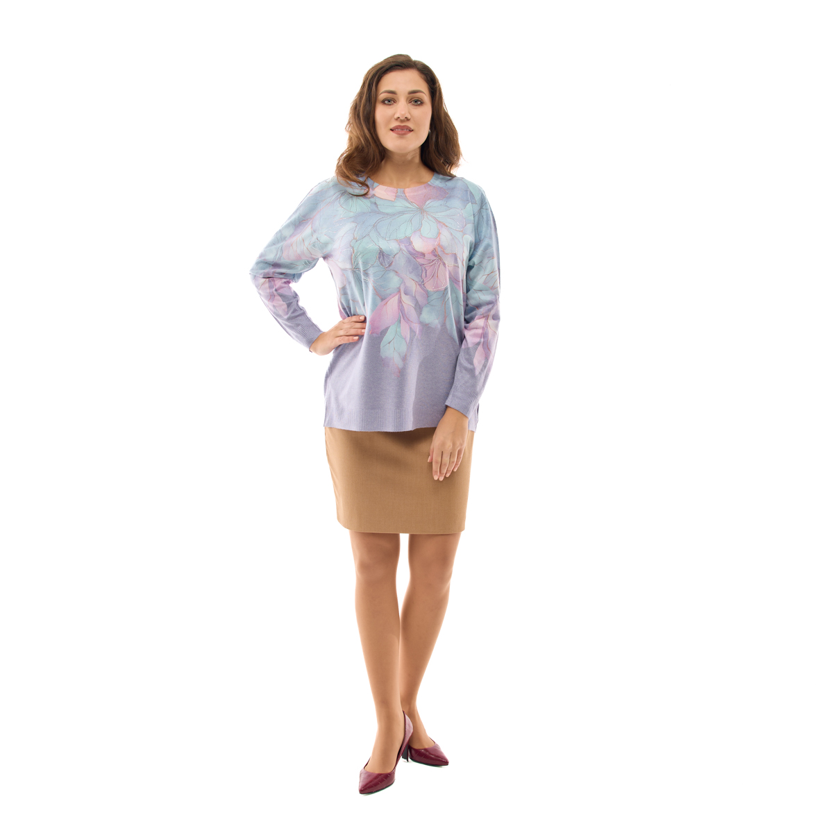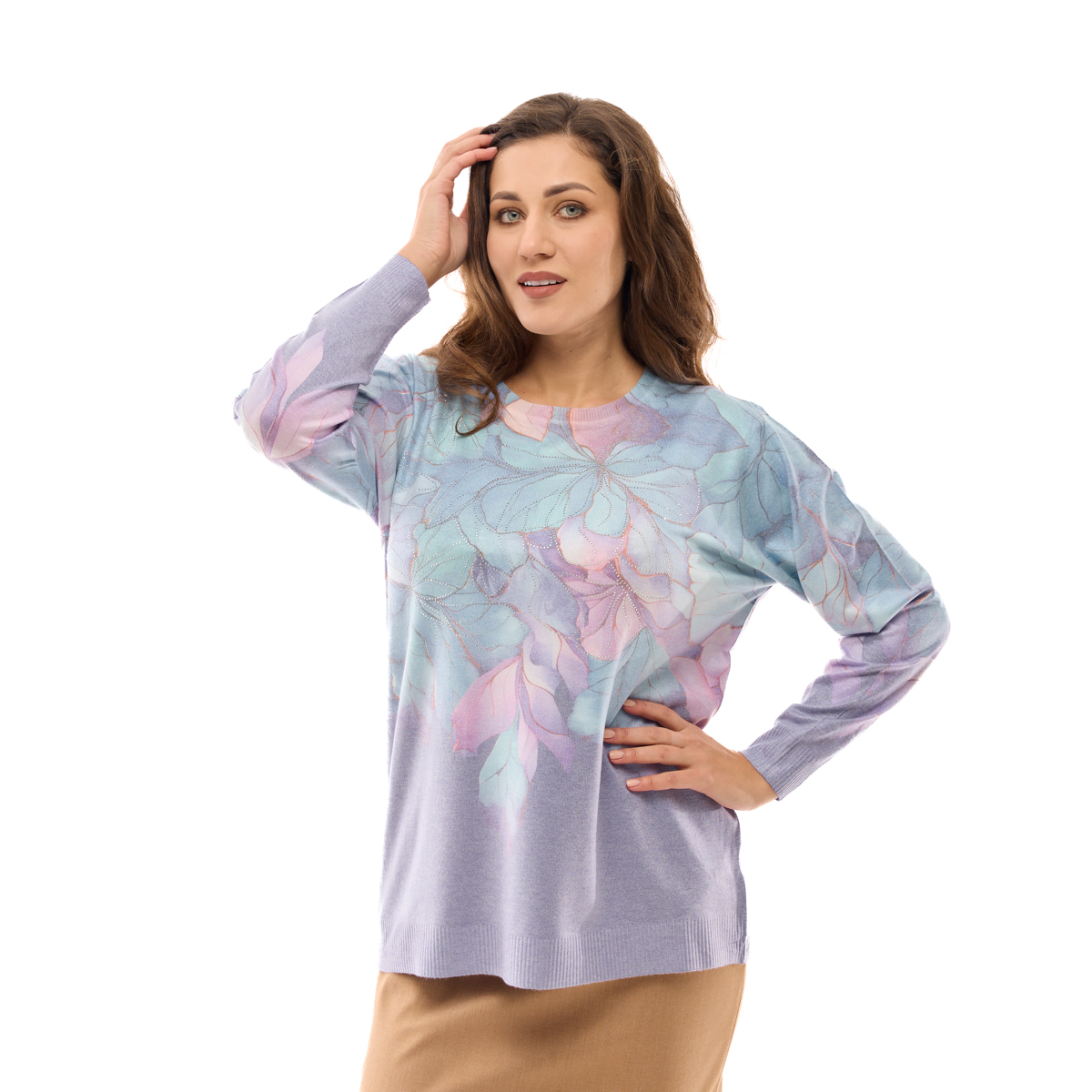 Джемпер Аліса - цей стильний і елегантний предмет гардероба по праву можна назвати витвором мистецтва. Унікальний квітковий візерунок робить модель неймовірно жіночною і привабливою.