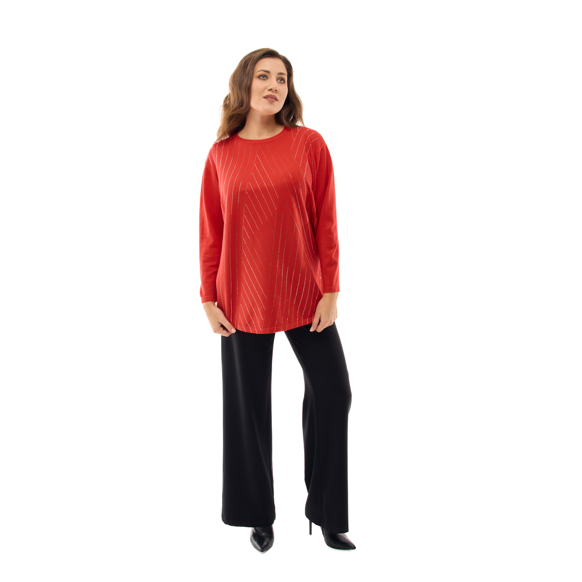 Джемпер Анджеліна забезпечить Вам святковий настрій, навіть, у похмуру погоду. Сяйво стразів, якими він оздоблений, подарують Вам світло та радість. Зверніть увагу на крій у формі трапеції.