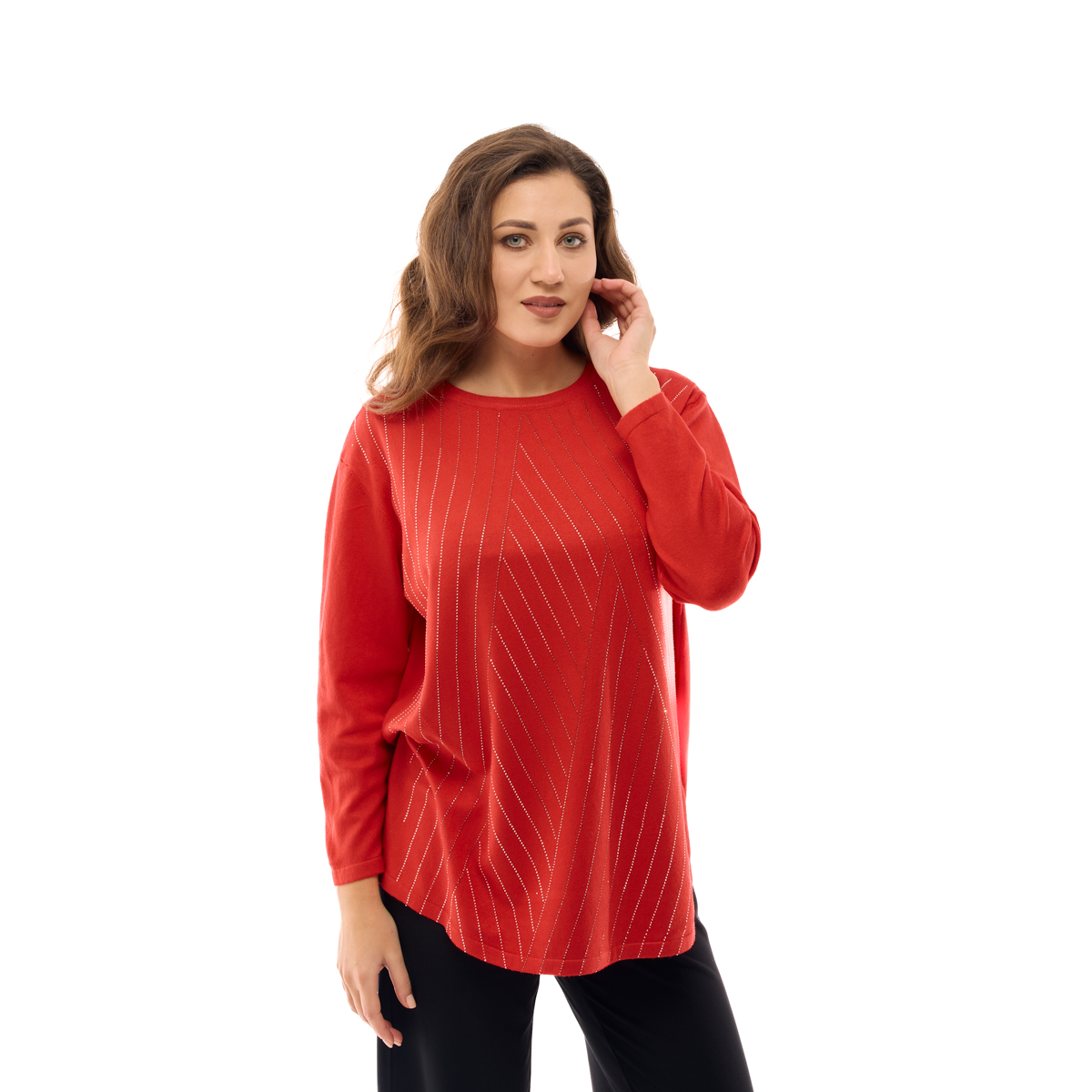 Джемпер Анджеліна забезпечить Вам святковий настрій, навіть, у похмуру погоду. Сяйво стразів, якими він оздоблений, подарують Вам світло та радість. Зверніть увагу на крій у формі трапеції. Він ідеально сідає на будь-який тип фігури. Бути жіночною легко!