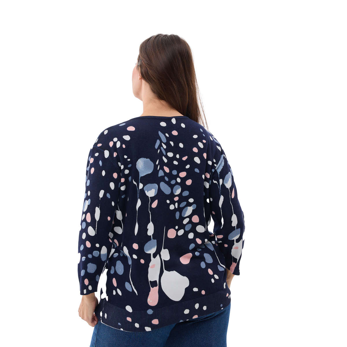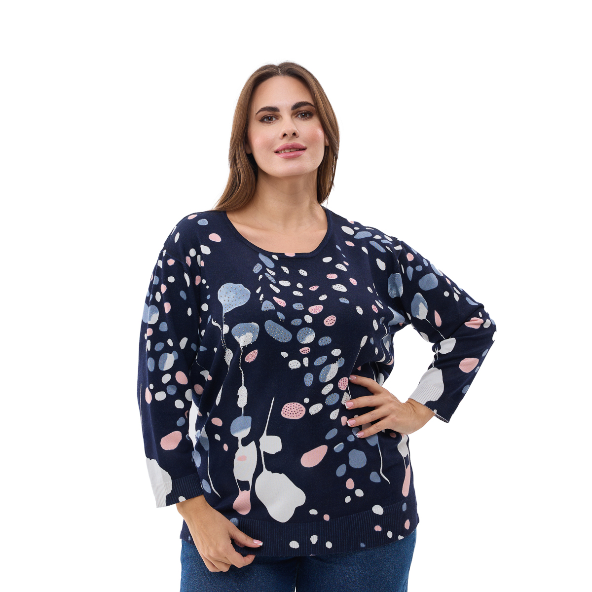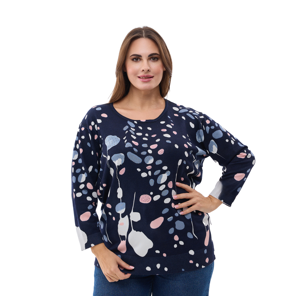 Комфортний крій: Напівприлеглий силует підкреслює фігуру, не обмежуючи рухів. Джемпер ідеально сидить на будь-якому типі статури.