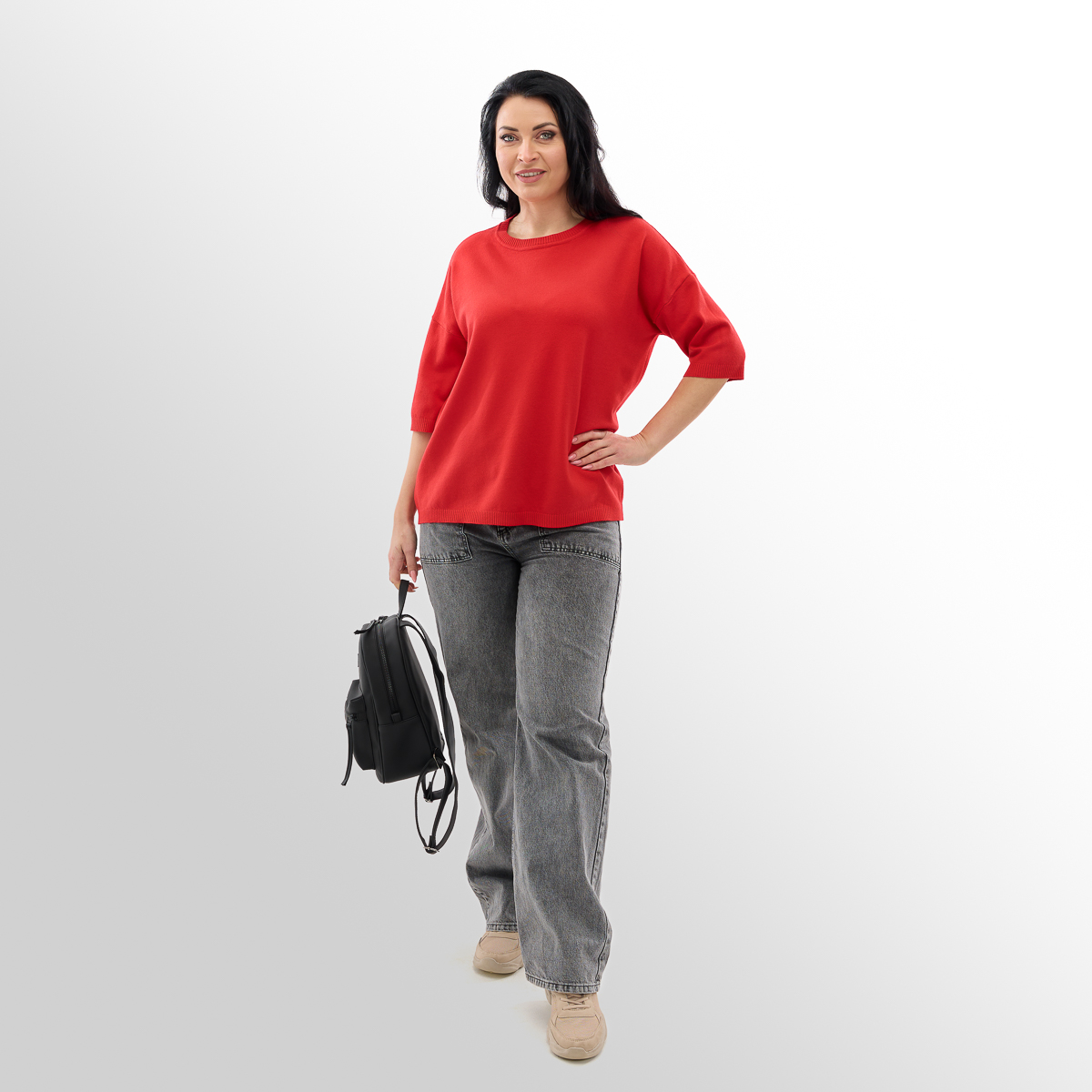 Джемпер Меланія - універсальне доповнення до Вашого гардеробу. Вільний крій ідеально сідає на будь-який тип фігури. Ви можете поєднувати його з будь-яким одягом - джинси, брюки, спідниці! Рукави три чверті додають зручності та функціональності.