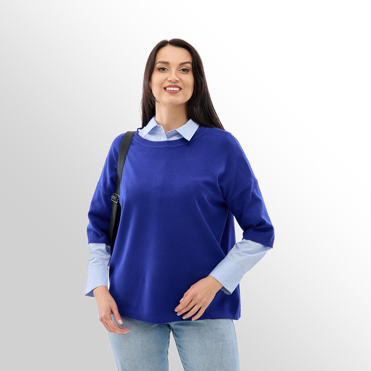 Завдяки вільному крою, джемпер м'яко лягає по силуету, не обтягуючи, але при цьому підкреслюючи жіночність. Він підходить для різних типів фігур, приховуючи можливі недоліки і забезпечуючи комфорт.