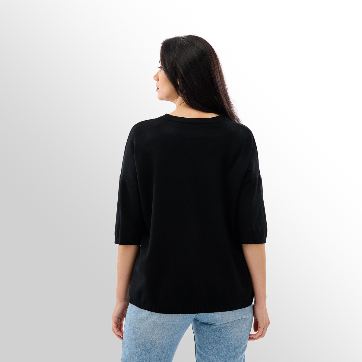 Джемпер Меланія - універсальне доповнення до Вашого гардеробу. Вільний крій ідеально сідає на будь-який тип фігури. Ви можете поєднувати його з будь-яким одягом - джинси, брюки, спідниці! Рукави три чверті додають зручності та функціональності.