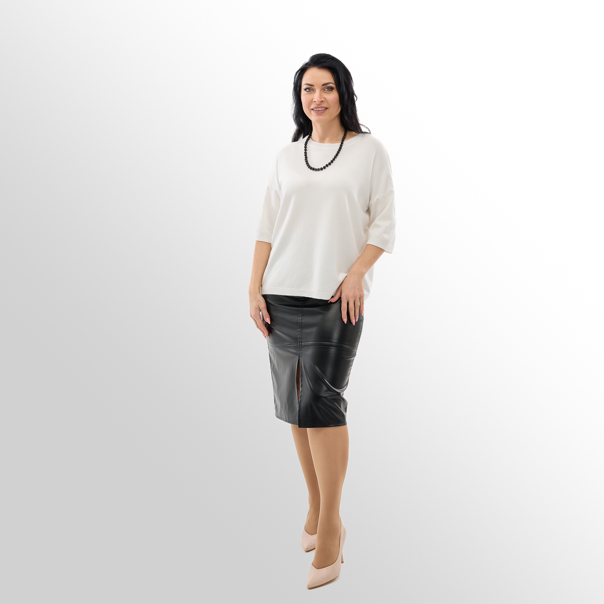 Джемпер «Меланія» - це невід'ємна частина базового гардероба, яка гармонійно поєднується зі спідницями, штанами, джинсами та шортами. Він допоможе створювати як елегантні, так і повсякденні образи, підлаштовуючись під ваш стиль.